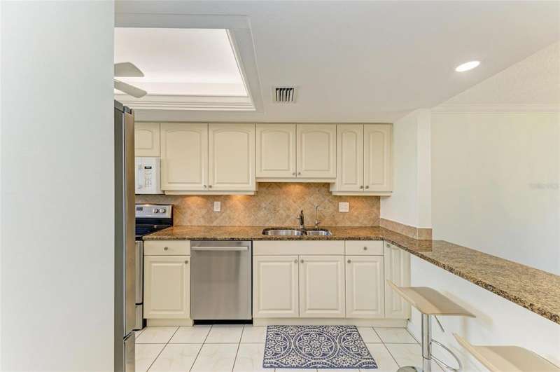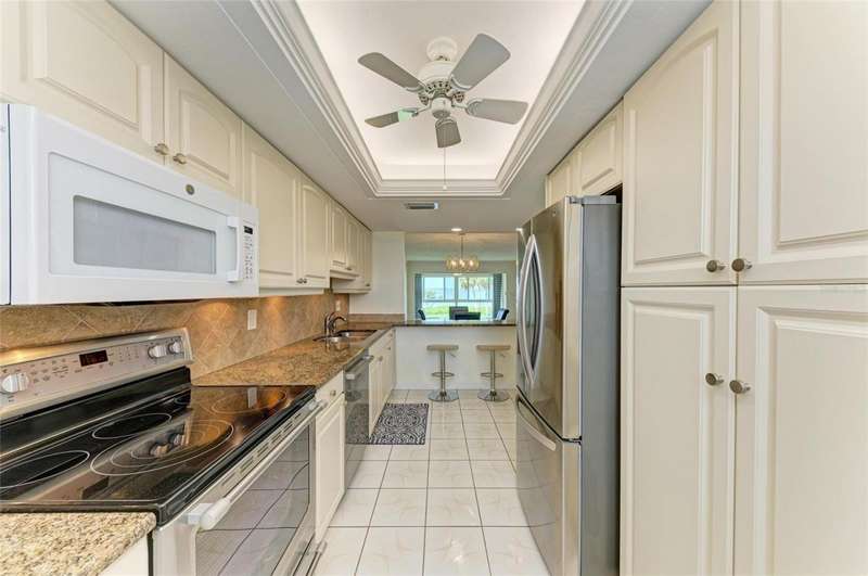 BOAT DOCKS - and so much more! Top floor condo in an elevator building ( NO ONE ABOVE YOU) . Million 'dollar Water Views....Mt Vernon's select water font properties overlook the inter-coastal waters of Sarasota Bay. Assigned covered parking with outdoor storage, short walk to the amenities and only 5 miles to Our Golf Beaches.This condo features a split bedroom floor plan and with no one above you! Imagine waking up every morning to view a piece of paradise with a million dollar water view of Sarasota Bay.The XL primary bedroom is spacious and features water views from your bed, large walk-in closet, updated ensuite bathroom with walk-in shower. The second bedroom is in the front of the condo along with the updated guest bathtub with shower. (BOTH BEDROOMS CAN ACCOMIDATE KING SIZE BEDS AND FURNITURE) The GREAT room combination provides flexibility for furniture placement as shown in photos. ...A Florida getaway and the American dream...from dining, entertaining, TV, birdwatching, stunning sunsets, reading a book this condo has a million-dollar view! Updated kitchen has plenty of counter space with granite counters and plenty of storage including a closet pantry and a breakfast bar, newer stainless appliances and coinvent washer and dryer. A/C 2024, Windows 2023, Hurricane Shutters 2010, ............... COMMUNITY FEATURES: remodeled clubhouse with banquet room, billiards, ping-pong, library & game room, lakeside veranda; boat docks; heated pool; tennis & pickleball courts; shuffleboard courts; spa; sauna; workshop & wood-shop; chip & putting green; walking paths; butterfly garden; bay front park; kayak launch & storage; bayside pavilion; lakeside gazebo; bird sanctuary; tidal pond; many ponds & spacious grounds of 86 acres teaming with wonderful Florida wildlife; plus many activities & socials. Have it all just minutes by car, boat and bike from Anna Maria Island's sugar white beaches, unique shops, & delicious dining. Start living like you're on vacation. The Mt Vernon Lifestyle knows no limits! DUES COVER: water; sewer; trash; recycle; pest control inside & outside; cable 200 channels with HD box; internet at speed of 100 with router; exterior maintenance repairs & replacement including, roof, fascia, soffit; landscape maintenance; insurance but not flood insurance.
