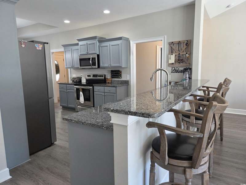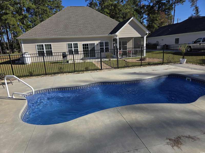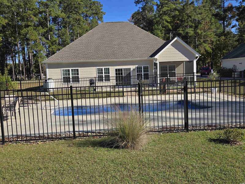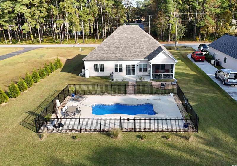 You have to see this practically brand new home on 1.5 acres, no HOA, inground pool, custom firepit, 18 x 20 storage building, and a great location! The home was built in 2022 with modern features like gray beadboard cabinets, granite counters, large pantry, nice trim work around doors and windows, low maintenance luxury vinyl plank flooring, tiled bathrooms, propane gas fireplace, and finished garage with pull down attic stairs. It is a split-bedroom floor plan with 2 guest rooms on one side of the house and the primary on the other. The primary bathroom has double sinks, 5 foot shower, separate toilet room, linen closet and huge walk-in closet. The open concept kitchen, dining, living areas make it a great space for entertaining and relaxing at home. From the living room, step into the screen porch or through a sliding glass door onto the 22 x 10 patio leading down a short stone path to your very own inground pool! The sundeck has plenty of room for picnics at the poolside table and several lounge chairs for all your friends and family to enjoy. Once the sun goes down, relax around the stone firepit. The rest of the acreage is a blank slate to create whatever spaces you enjoy such as gardening, caring for animals or even setting up your own sports fields! The back of the property connects to Hwy 65 where you could potentially have a separate entrance to your property! It's rare to find all this land just 6 miles to the historic downtown Conway and just 20 miles to the Atlantic Ocean of Myrtle Beach! Ask about Special Financing options!
