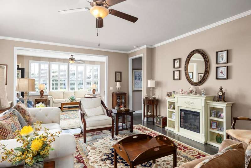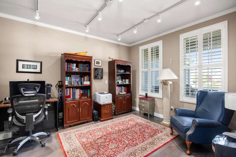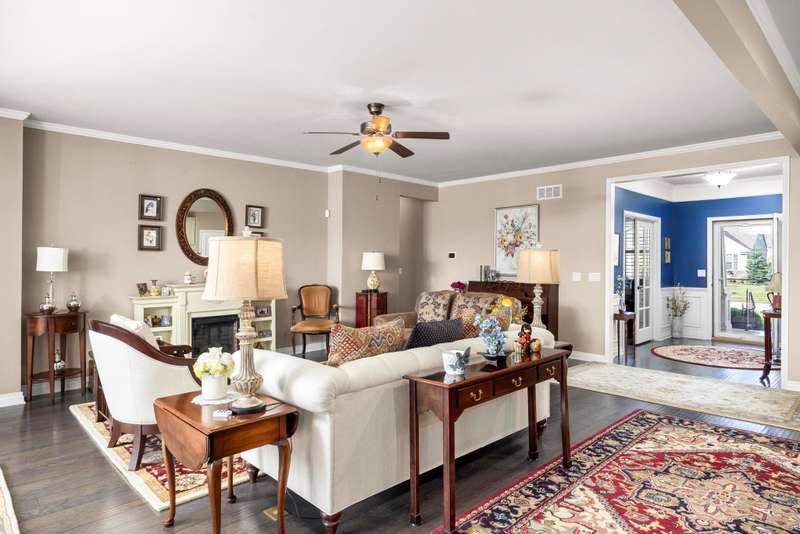 This absolutely stunning home offers the space, style, and upgrades you’ve been searching for—perfectly located in the area’s premier 55+ community, Del Webb Grand Reserve. From the moment you step inside, the thoughtful design and quality craftsmanship are on full display. Just off the entry, elegant French glass doors open to a spacious den, ideal as a home office, library, or cozy retreat. The gourmet kitchen is a true centerpiece, showcasing stainless steel appliances, upgraded cabinetry, granite countertops, and a generous corner pantry. Gleaming hardwood floors flow throughout the main living areas, seamlessly connecting the open floor plan to the bright and inviting sunroom. Designed with privacy in mind, the home features two luxurious suites—an expansive owner’s suite and a private guest suite—positioned on opposite sides of the home. Each bath is beautifully appointed with granite countertops, tile flooring, and upgraded shower and tub surrounds. A large laundry room adds convenience with space for a boot bench, folding table, or extra storage. Upstairs, a spacious loft provides endless possibilities, whether for guests, hobbies, or entertaining. The fully finished basement takes living space to the next level with a large recreation area and an additional bedroom—perfect for overnight visitors, a second office, or extended stays. Step outside to enjoy your private outdoor retreat: a spacious deck complete with a power awning, ideal for relaxing in the shade or entertaining friends. An oversized 2.5-car garage offers plenty of room for vehicles, a golf cart, and more, and of course there is a whole house backup generator as well! As a resident of Del Webb Grand Reserve, you’ll enjoy exceptional amenities, a vibrant neighborhood atmosphere, and the ease of low-maintenance living. This is your opportunity to own a truly exceptional home that checks every box—don’t miss it!
