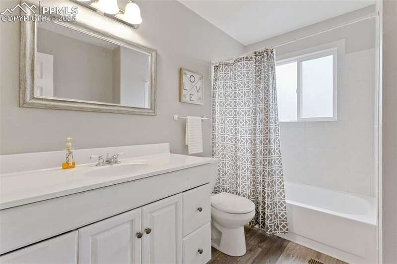 This move-in ready, immaculate home, is nestled in the sought-after Old Farm neighborhood. This inviting two-story home offers five beds, four baths, and two-car garage, located on an amazing lot. The home has been updated in recent years, including new countertops in the kitchen with new stainless steel stove/oven and dishwasher, new luxury vinyl planking flooring throughout the main level. The primary bathrooms has a new glass shower door, new remodeled bathroom in the basement, fresh coat of paint throughout. Furnace 2017. AC and Radon 2018. Roof replaced in Fall of 2023. The main level is very spacious with both a family and living room. Easy access from the garage to inside the home. Half bath on main level as well. On the upper level all four bedrooms are well-sized, but the primary is huge!. Massive closets with so much storage space. Two bathrooms upstairs. The basement has another family room, bedroom which are carpeted, remodeled bathroom and mechanical/laundry room with storage space. Step outside and enjoy the privacy of a fenced backyard, beautiful landscaping, retaining wall, complete with a large deck and concrete patio, large storage shed and swingset—ideal for relaxing or entertaining. This house is super clean and in such great condition. With nearby parks, trails, and plenty of mature trees, this home provides both convenience and natural beauty. Don’t miss the chance to make this exceptional property your own!