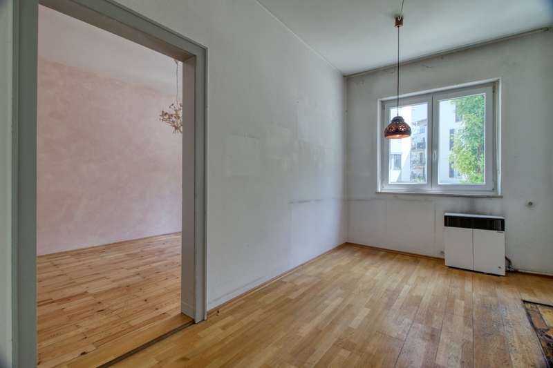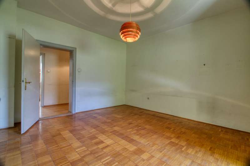 For sale is a well-designed 3-room ground floor apartment (raised first floor) with approx. 75 m² of living space in a well-maintained 6-party house, which is predominantly owner-occupied. The property is located in a quiet cul-de-sac in the immediate vicinity of the former state garden show grounds at Mangfall Park. The city center is only a few minutes' walk away, which is why all important facilities are within walking distance. The 3 bright rooms measuring between 13 and 20 m² allow for flexible use. The high ceilings with a room height of approx. 2.75 m give the apartment a spacious feel. The west-facing balcony with a view of the quiet communal garden is an absolute asset. The room directly adjacent to the kitchen with connecting door is ideal as a living/dining room, but could also be used as a guest room or office. The wall between the kitchen and the living-dining room could probably be removed to create an open-plan living-dining kitchen. The other two rooms are suitable as children's rooms, bedrooms, but also as living rooms or guest rooms with a work area. The approx. 7.3 m² bathroom has a bathtub, a WC and a washbasin, but is in need of renovation. The apartment has an underground parking space in the 2nd basement of the building opposite. The underground garage is relatively new and in very good condition, and there is also an elevator. The approx. 15 m² brick-built cellar room with window directly below the apartment appears dry and offers plenty of storage space, and there is also an approx. 8 m² storage compartment on the 3rd floor. There is also a bicycle room, a laundry/drying room and a beautifully landscaped garden for communal use. You will receive further information with our complete exposé.