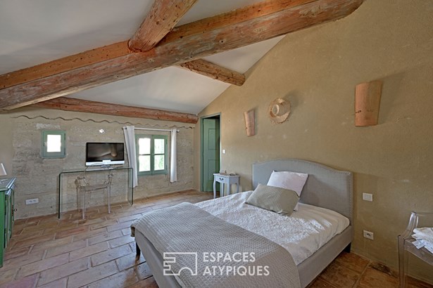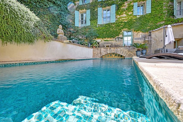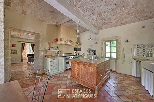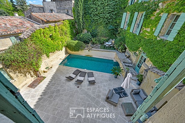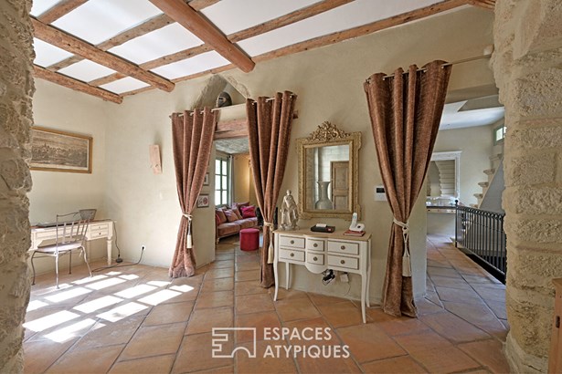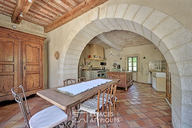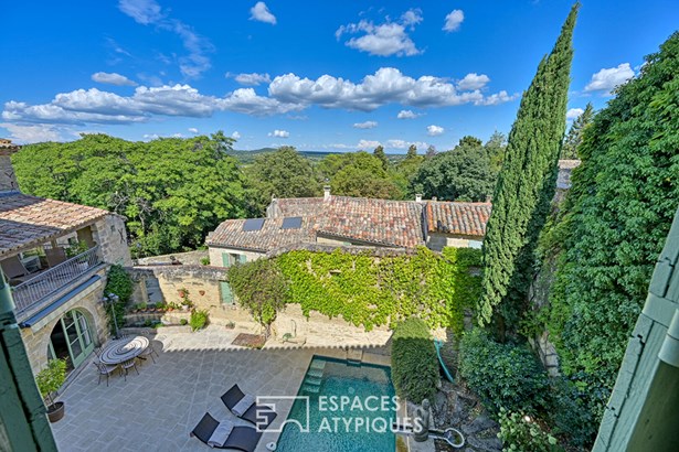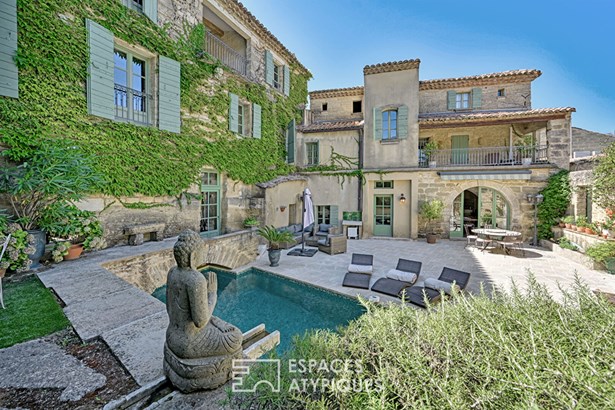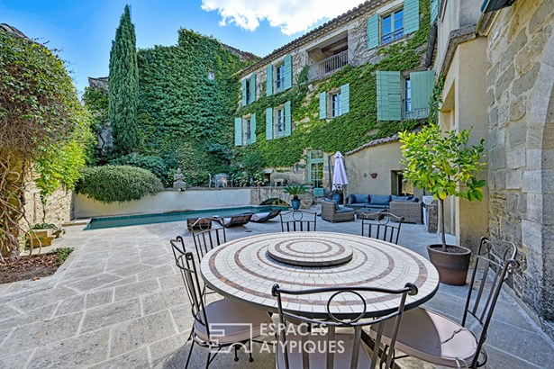 A stone's throw from Uzes, nestled in a secluded village where time seems to stand still, this stone residence of approximately 365 sqm spreads its old-world charm around a sunny courtyard, with a terrace and swimming pool, and a hanging garden.