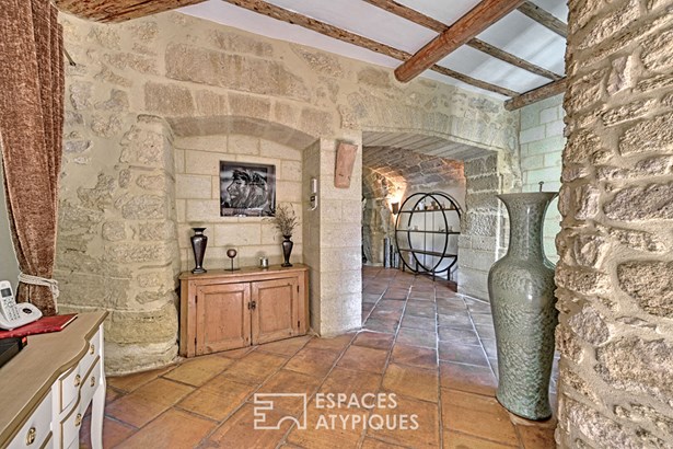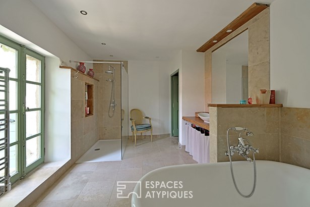 A workshop, wine cellar, pantry, bicycle storage, and a garage for two to three cars complete the ensemble. Electric underfloor heating on the south side, oil-fired radiators on the west side, double glazing, nothing has been left to chance. This house tells a story. That of old stones, of lived-in silence, and of an art of living that time cannot alter.