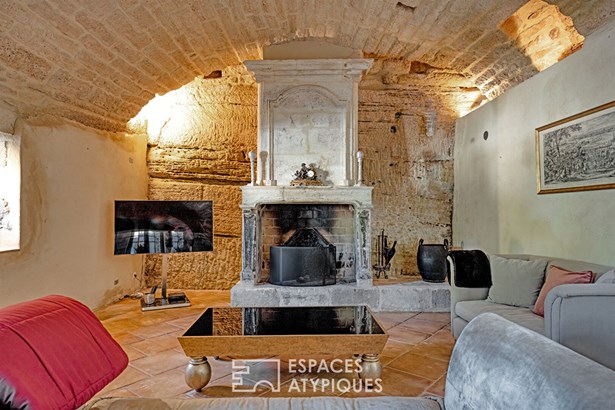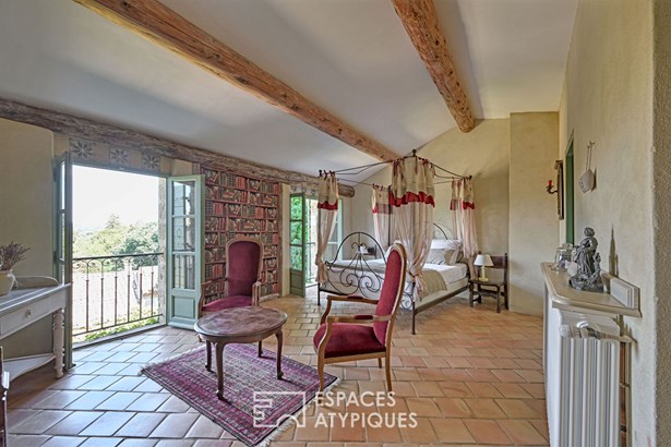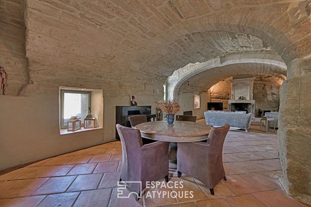 Behind a small, discreet entrance courtyard, a door crossed like a threshold, the gaze immediately rises under the majestic vaults of a former stable reinvented as a large living room. There, the rough stone interacts with a fireplace almost sculpted in the rock, and the light, fluid and soft, slides to the depths of its 59 sqm. The atmosphere is striking: both majestic and deeply welcoming. A little to one side, a second intimate living room with a vaulted ceiling in parefeuille houses a fireplace, like a heart beating in the stone. It opens, on one side, onto a double kitchen bathed in light with triple exposure, wooden island, cooking range and on the other onto the terrace. The adjoining dining room, delimited by a stone arch, opens generously to the exterior and extends the experience of the house towards the sky. On the upper floor of the south wing, the master suite stretches over 46 sqm. A triple exposure bedroom opens its windows onto the murmur of the stones and the softness of a covered terrace. A hallway lined with storage leads to an office, then to a bathroom where a claw-foot bathtub, Italian shower and stone basin create a timeless, almost romantic setting. Higher up, two bedrooms share a floor. One of them, extended by a suspended terrace, offers a view to the west that the sun sets ablaze each evening. A bathroom with simple and elegant lines discreetly completes this level. In the west wing, accessible independently, the first two bedrooms on the first floor overlook the courtyard and the rooftops of the old village, each with its own bathroom. On the upper floor, two further suites separated by a covered terrace open onto infinity. There, the view embraces the countryside as far as Mont Ventoux, in an almost painterly depth of field. Each room is designed as a refuge: generous volumes, noble materials, breathing space. The hanging garden, a little secluded, like a secret corner where one would come to read, dream, or simply be silent. Below, the main courtyard, approximately 162 sqm, comes alive with small nooks, soft shade, and sun-drenched corners. A summer dining room, a solarium, and a swimming pool with simple lines create a rich, fluid, and inspiring outdoor life.