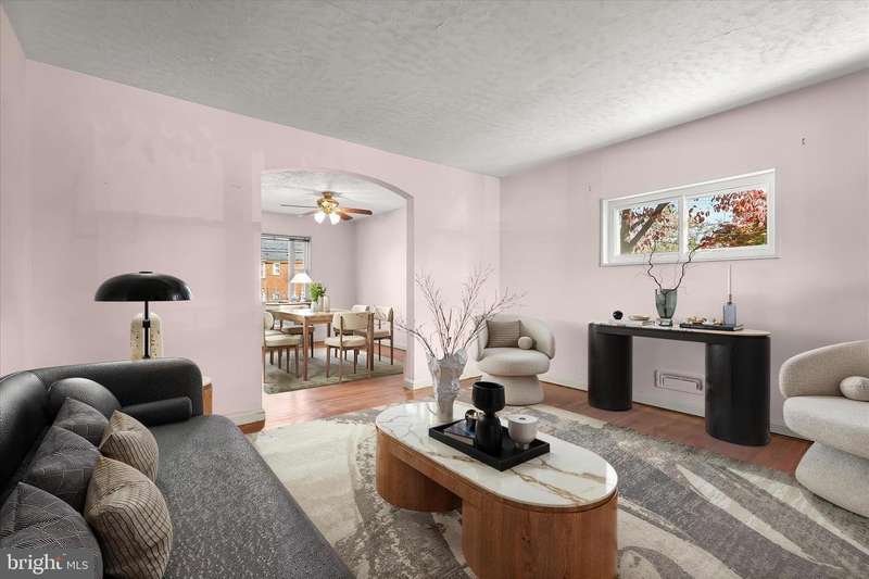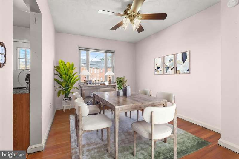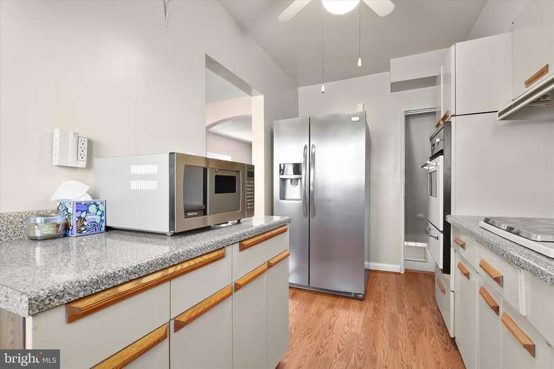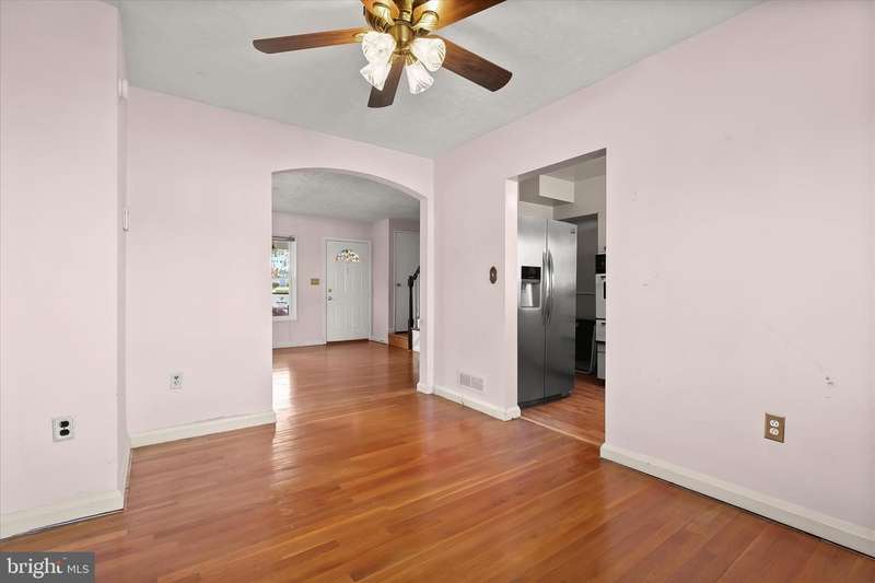 Arrive at this charming brick end-unit townhome nestled on a cul-de-sac in the Beechfield community. Step onto the welcoming front porch and into an inviting open floor plan filled with natural light. The spacious living room features beautiful hardwood floors that continue into the dining area, creating a seamless flow for everyday living and entertaining. The kitchen offers ample storage, a stainless steel refrigerator, a wall oven, and durable laminate flooring. Step outside to the fenced backyard, perfect for gatherings, play, or simply relaxing outdoors. Upstairs, hardwood floors continue throughout three spacious bedrooms, offering flexibility for sleeping, work, or hobbies. A full hall bath with a tub/shower combination and charming vintage flair completes the upper level. The partially finished lower level provides excellent space for a recreation, game room, or office, along with a utility area offering abundant storage, a powder room, and direct access to the yard. Conveniently located near major commuter routes, including US-40, I-95, and I-695, this home offers comfort, versatility, and a wonderful opportunity in a desirable neighborhood.