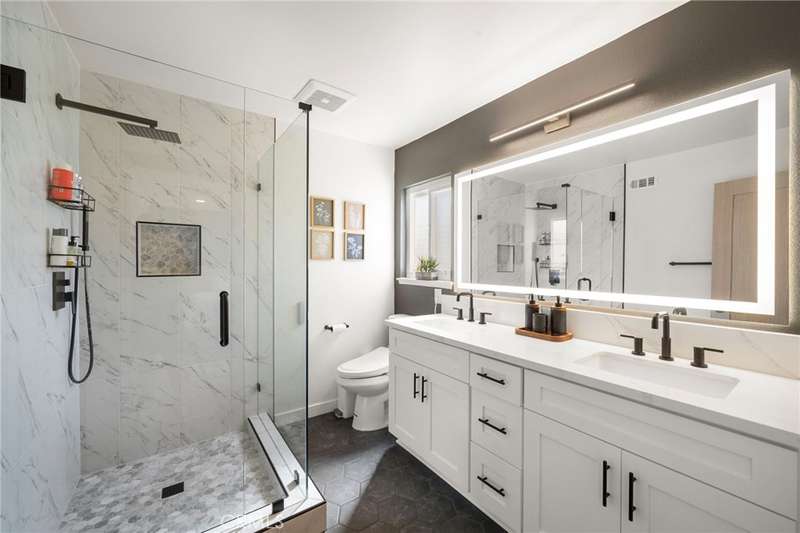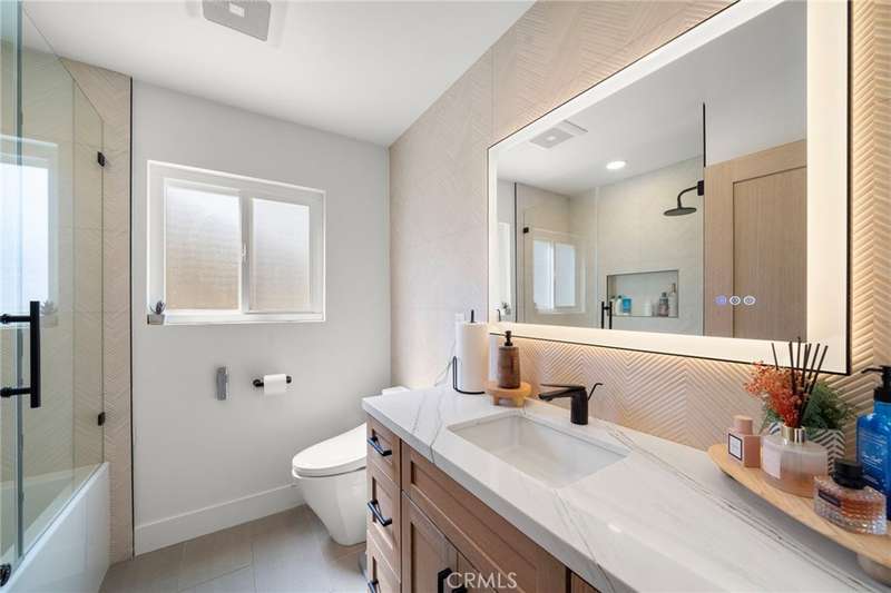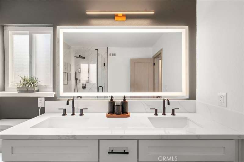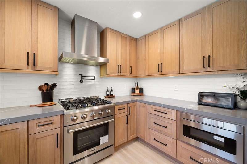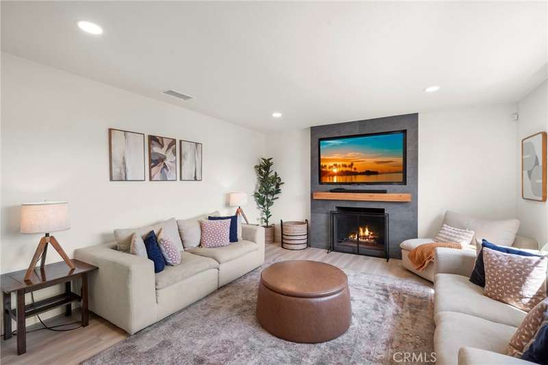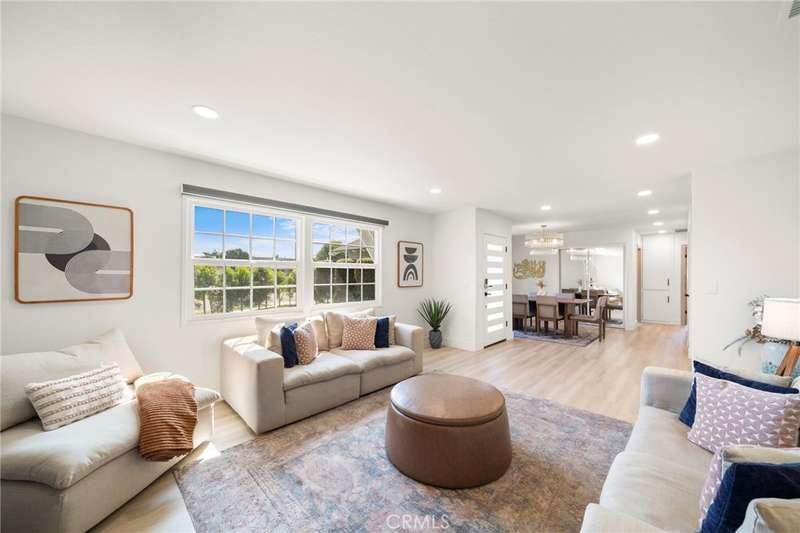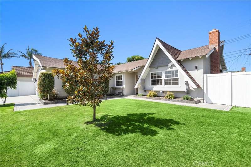 Seller has spent over $200,000 in upgrades. Absolutely stunning and completely reimagined with modern luxury finishes, this single-story home at the end of a cul-de-sac in the highly sought-after Dutch Haven America neighborhood near Huntington Harbor is designed to impress with its open-concept floorplan, new (2024) furnace and A/C system, luxury waterproof wood vinyl flooring, French-style dual pane windows, electronic-controlled window shades, recessed lighting, solid wood raised panel interior doors, and more. It boasts striking curb appeal with a custom garage door, extra-wide driveway, and lush landscaping. A flower-lined walkway leads to the custom entry door that opens to the elegant living room with slate fireplace pre-wired for TV. The living room flows seamlessly into a full-size formal dining room--originally the 5th bedroom--creating an open, flexible space for entertaining. The gorgeous remodeled chef's kitchen is a modern masterpiece featuring quartz countertops, subway tile backsplash, breakfast bar with quartz waterfall and pendant lights, professional-grade stainless appliances (Thor gas range with pot-filler faucet, Thermador vent/hood, Bosch dishwasher, Sharp under-counter microwave), plus an extra deep Blanco sink with a Brizo Artesso faucet with smart-touch activation, and fine-finish custom cabinetry with under-cabinet lighting, pull-outs, spice organizers, and hidden trash. Spa-inspired bathrooms showcase chic designer tile, quartz countertops, Toto auto-temp-control toilet seats with washlets, touch-sensitive LED mirrors, and frameless clear-lass enclosures. The primary has dual sinks and an oversized walk-in shower with multi-head showers, while the guest bath has a tub/shower combo with rain, hand-held shower heads with thermostatic Kohler shower valve. The private backyard is a tranquil oasis with walls of foliage that provide added privacy while still allowing welcoming ocean breezes. It features a lush lawn, a bubbling above-ground spa, and a covered patio for year-round outdoor dining, entertaining, and relaxing. Additional upgrades include a 200 AMP panel, new Pex plumbing, Tesla universal charger, upgraded electrical rewiring, mirrored closets, ceiling fans, furnace relocated to the attic to create added closet space, and more. Ideally located near upscale Bella Terra shopping and dining, minutes to the beach, parks, and award-winning schools, this fabulous home truly has it all.