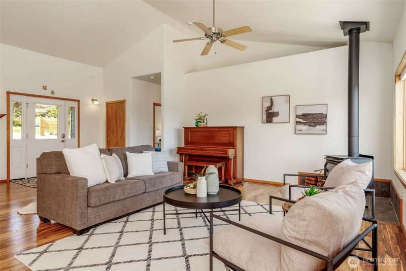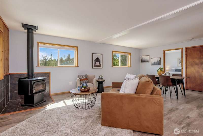 Enjoy 4 acres for you & pets to roam. Grow your own vegies, fruit & flowers or just enjoy open space around your home and accessory dwelling unit (ADU). Views of Oak Bay, Puget Sound shipping lanes and Cascade Mountains are beautiful and could be enhanced by tree trimming. The single story 1516 sq ft 2 bed & den home is wheelchair accessible with a lovely patio and two car attached garage. The second building has 1,800 square feet of studio/workshop/garage for your art work, projects, collections, home business, home gym, space for your dreams! Upstairs is the 864 sq ft 2 bed ADU with wide deck to enjoy the view. Launch your kayak across the road at the Jefferson County Park or a bigger boat at the marina. Ductless heat pumps & woodstoves!