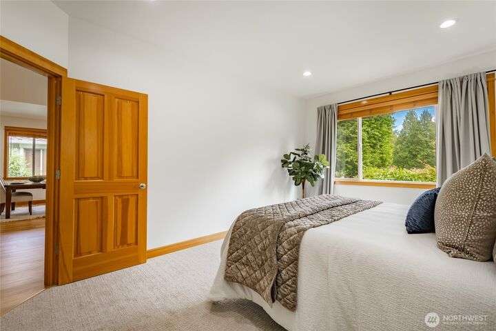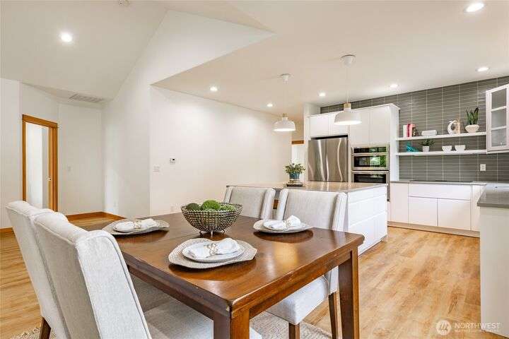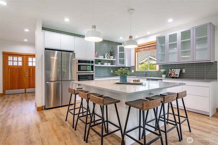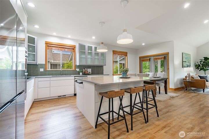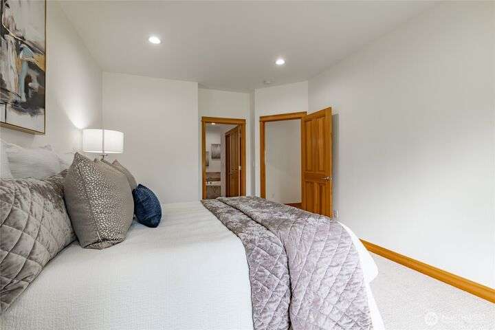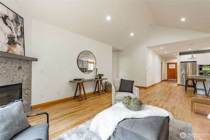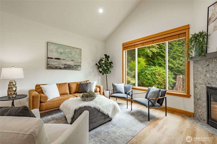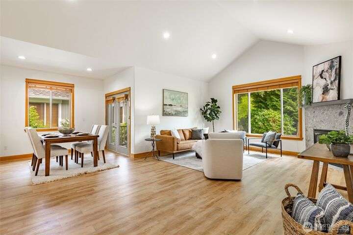 Beautifully updated 2 bed, 2 bath, + den, single-level condo on the 14th fairway of Semiahmoo Golf & Country Club. Enjoy a quiet interior with a peaceful primary suite that faces the course. Renovated kitchen features quartz counters, Samsung appliances, under-cabinet lighting & deep Ruvati sink. Luxury vinyl plank floors in main areas, new carpet in bedrooms, fresh paint, updated baths, modern fireplace & 100% LED lighting throughout. Second bedroom is smartly buffered by the generous 2-car garage, offering extra space for storage or hobbies. Low-maintenance living in a serene golf course setting—move-in ready & just minutes to the marina, trails, restaurants & more. Discover the best of resort-style life at Semiahmoo!