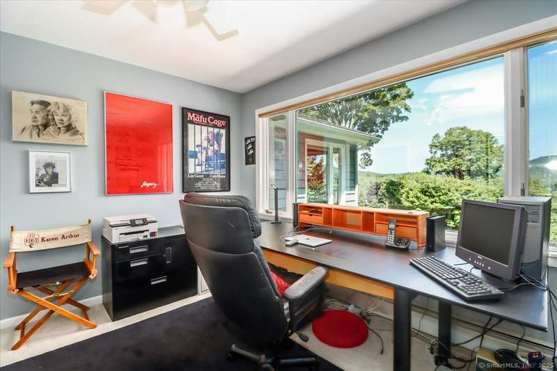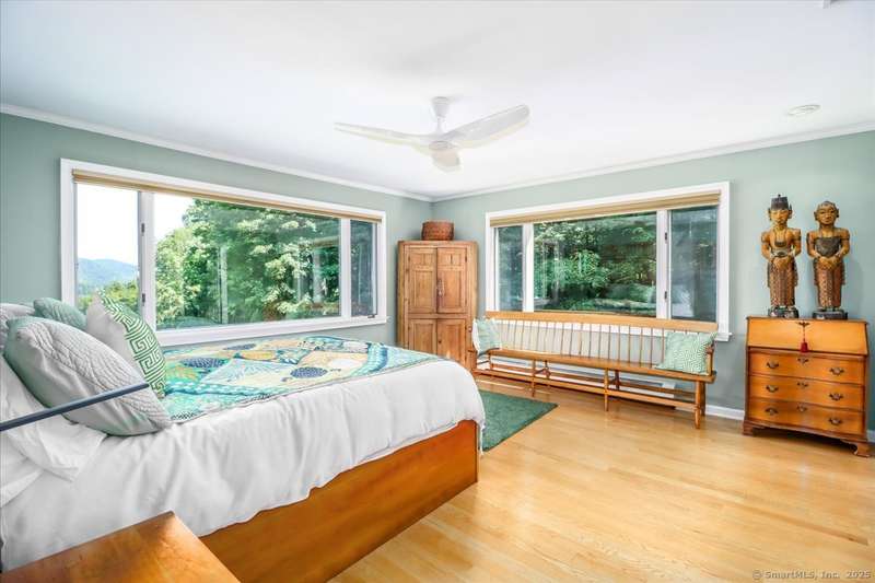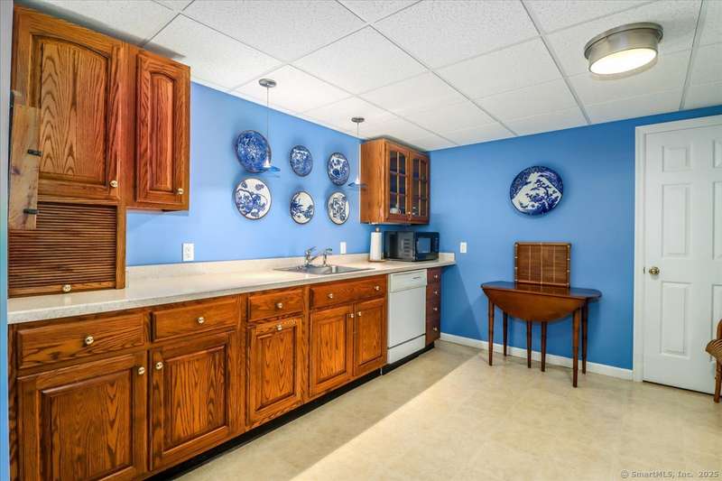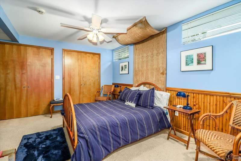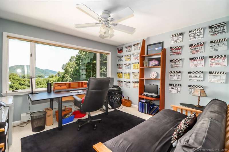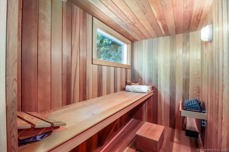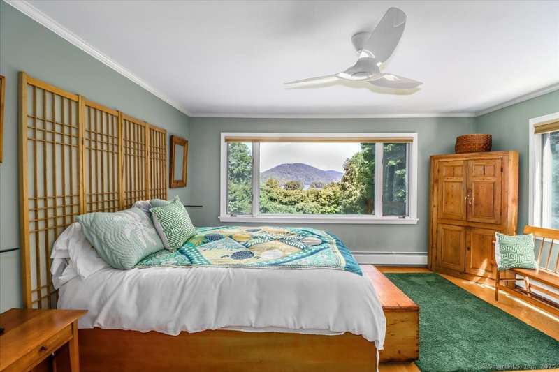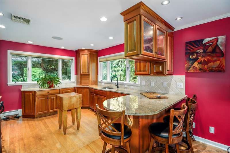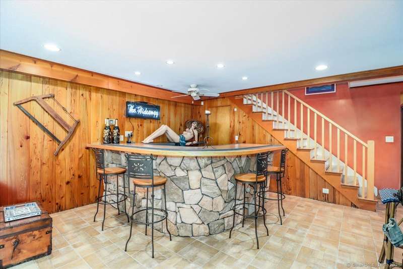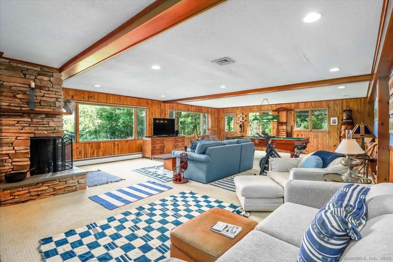 Exceptional Candlewood Lake Ranch with Panoramic Views and fully approved accessory apartment and additional lot. Experience lakeside living at its finest in this remarkable Candlewood Lake home, featuring breathtaking water views. From the moment you enter the foyer, you're greeted by a dramatic wall of windows framing stunning lake vistas. Open-concept design features a spacious living room with a handsome stone fireplace, built-in bookcases, and a dry bar, flowing seamlessly into the dining area and a custom kitchen with granite counters, cherry wood cabinetry, and a breakfast bar. Main-level primary suite is a peaceful retreat with lake views and a recently remodeled bath-perfect for starting your day. Sauna room offers the ultimate in relaxation. An additional bedroom, library, and laundry area complete the main level. Walk-out lower level is an approved apartment, ideal for guests or multi-generational living. It includes a large great room with stone fireplace and bar, a bedroom