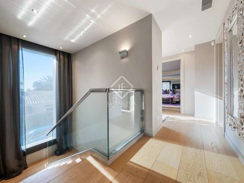 Lucas Fox is proud to present this beautiful Mediterranean and luxury villa , a few meters from La Llosa beach in Cambrils, in an idyllic setting, perfect for lovers of tranquility. The villa's decoration and recent renovations have been masterfully executed by a renowned architect of international acclaim. The attention to detail is evident in every aspect of the design, with carefully chosen furniture and elements seamlessly integrated from the outset of the project. Each room reflects a harmonious blend of comfort and sophistication, showcasing the finest craftsmanship. As we enter the garden, the main façade captures attention with its unique tower, a striking architectural feature that adds character to the home. The ground floor of the tower features a cozy living area, complete with a fireplace and furniture that harmonizes beautifully with the curves of the walls. The ceiling is adorned with designer moldings and lighting, creating an inviting ambiance perfect for relaxation or entertaining. Adjacent to the living area, we find a stylish dining room that flows into a modern open kitchen, equipped with a peninsula and top-of-the-line appliances. This space is designed for both functionality and elegance, making it ideal for culinary enthusiasts. From the dining room, access to an exterior terrace invites you to enjoy outdoor dining on a natural wood floor, complemented by a charming pergola. Additionally, the exterior provides access to a basement space designed as a wine cellar, perfect for connoisseurs. On the same ground floor, the entrance hall leads to two spacious double bedrooms, each fitted with wardrobes, and a full bathroom, ensuring comfort and convenience for family or guests. Ascending a magnificent staircase from the entrance hall, we reach the upper floor. Here, in the tower, is the splendid main bedroom, which includes a dressing room, a private bathroom, and a balcony. This serene retreat offers a perfect escape, with the added luxury of stairs leading to the roof of the tower, where a panoramic terrace awaits with breathtaking views of the sea. Completing this floor are two additional double bedrooms, each with wardrobes, and a third bathroom, providing ample space for family and friends. The villa is set on a generous plot adorned with lush bushes and large palm trees, enhancing the Mediterranean charm of the property. A solid wood pergola offers convenient exterior parking space. The garden, flat and beautifully landscaped, encircles the house, creating a tranquil oasis for relaxation or entertaining guests. Residents of this exclusive development benefit from a sports area featuring a spa, gym, two swimming pools, and multiple tennis and paddle tennis courts, ensuring a lifestyle of leisure and activity. Contact Lucas Fox today to arrange a viewing of this exceptional property. Request a visit and be captivated by its stunning architecture and surroundings. This luxury property in Cambrils is ideal for year-round living or as a first or second residence, boasting over 300 days of sunshine and an average temperature of 17 degrees. Its coastal location on the Costa Dorada enhances its appeal, making it a prime choice for those seeking a vibrant lifestyle by the sea. Furthermore, the villa is conveniently located near Tarragona, a city steeped in history, known for its Roman ruins that once marked the capital of one of the most significant cities in the Roman Empire. These archaeological remains were designated as a UNESCO World Heritage Site in 2000. The combination of beautiful beaches and rich history, along with a diverse cultural and leisure offering, makes this area an excellent choice for purchasing property on the Costa Dorada—a heritage filled with stories, moments, and emotions waiting to be experienced.