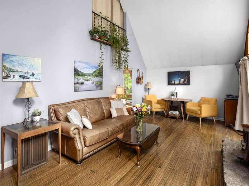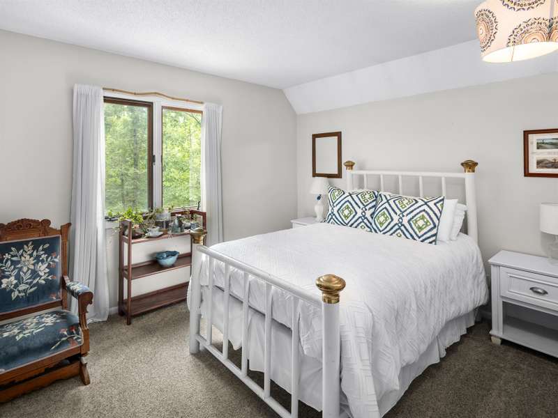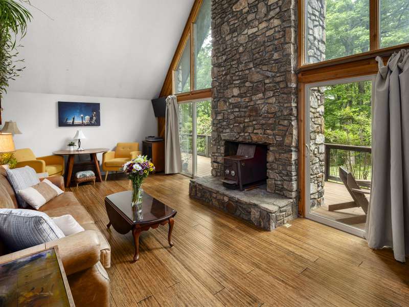 Private mountain retreat in the highly sought after Bent Creek area. This unique, light filled, A-frame style home is full of character and sits on just over an acre of unrestricted land with mature landscaping. The main living area features a towering stone fireplace, flanked by windows and emphasized by the cathedral ceiling. The outdoor spaces allow you to be immersed in nature and include a wrap around Trex deck with custom cedar benches and an inviting front porch. There is an abundance of storage between the attached 2 car garage and full unfinished basement with workshop space. All this in an unbeatable location only a stones throw from the Bent Creek experimental forest section of Pisgah National Forest with easy access to the NC Arboretum, Blue Ridge Parkway, French Broad River Access, Biltmore Estate and all of the amenities of West, South and Downtown Asheville. Newer zoned heat pumps (2020) and updated bathrooms. Additional 1.03 acre lot also available for purchase.