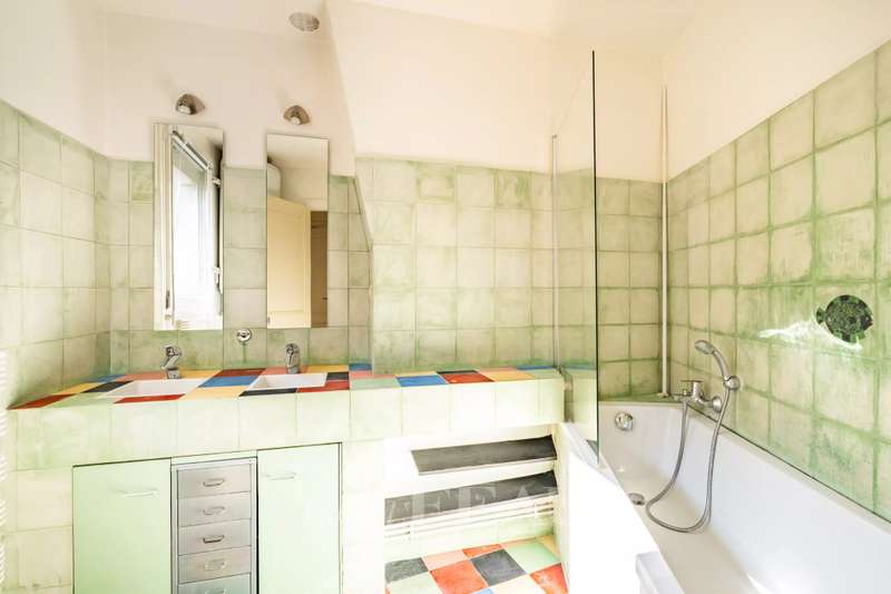 Gay Lussac neighbourhood, between Luxembourg Gardens and Mouffetard village. This peaceful and sunny apartment on the sixth and top floor of a luxurious early 20th century building enjoys open views. It includes a double living/reception room, an equipped kitchen, four bedrooms, a bathroom, a shower room and a separate wc. With two cellars. Pierre Alviset catchment area.