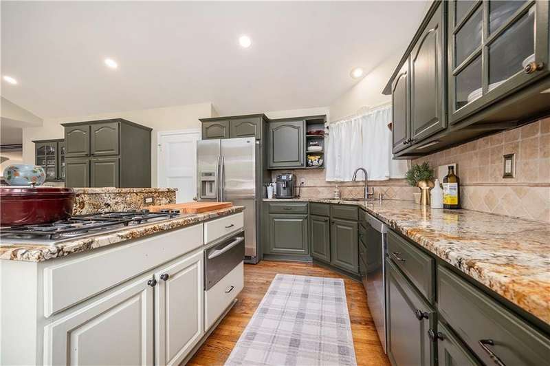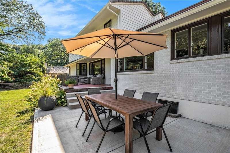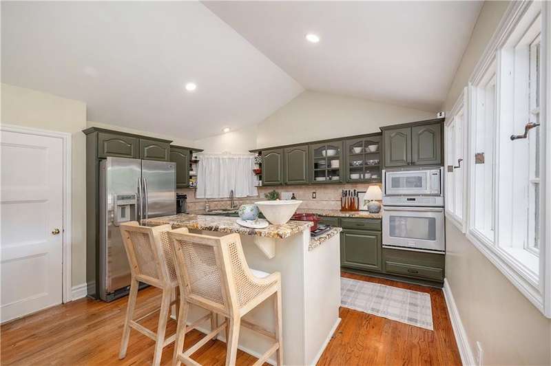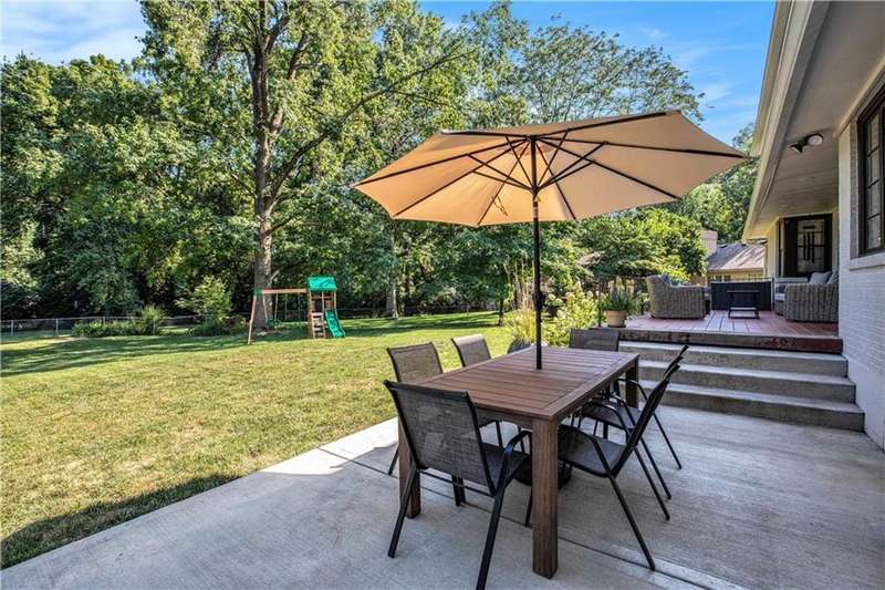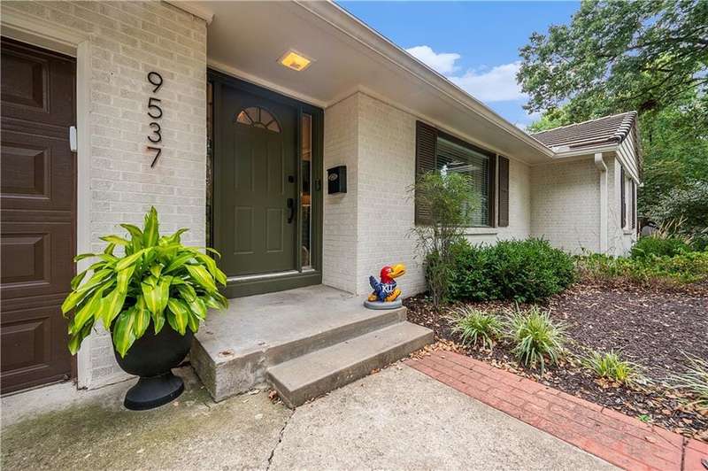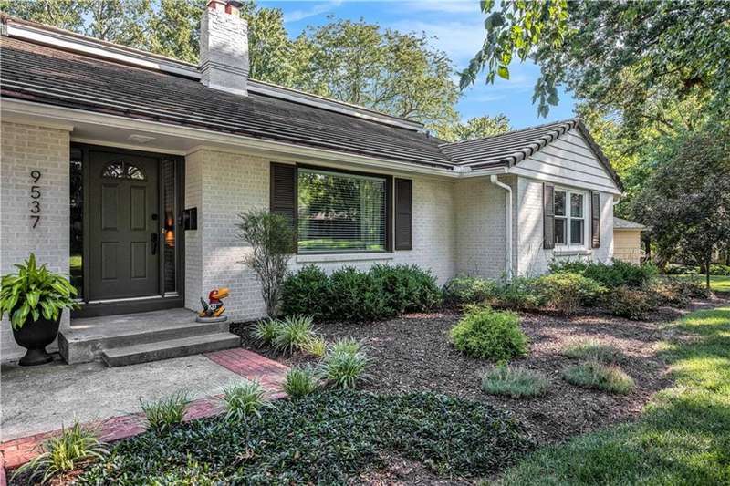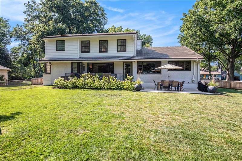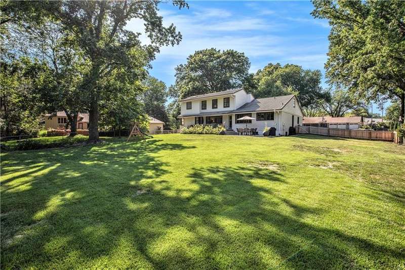 Charming 1.5-story home in the heart of Old Leawood! Situated on a picturesque half-acre lot, this residence offers 4 bedrooms, 3 full bathrooms, and a 2-car garage. Just shy of 3400 square feet! Step inside to gleaming hardwood floors, a dramatic vaulted ceiling with staircase, and a versatile front office that could easily serve as a formal dining room. The expansive living room, complete with a wood-burning fireplace and custom built-ins, overlooks the private patio and lush treed backyard. Living room opens to the kitchen and breakfast area creating an inviting space which is perfect for family gatherings or ones that enjoy entertaining. The kitchen is a true delight, featuring a center island, gas stove, stainless steel appliances, wet bar, coffee bar, pantry, and abundant cabinetry. The primary suite is tucked upstairs with a generous bathroom and walk-in closet, while a second en-suite bedroom on the main level offers the flexibility of a primary option as well. A newly updated hall bath, additional bedroom, and laundry room complete the main floor. Upstairs, youll also find a third bedroom plus a versatile bonus roomperfect as a family room, office, or optional 5th bedroom. The basement includes a partially finished area along with an impressive amount of storage space. Out back, enjoy a spacious patio overlooking the expansive yardready for play, relaxation, or future enhancements. Recent updates include new carpet, interior and exterior paint, lighting, A/C, and upstairs insulation. All this in an unbeatable location close to shops, restaurants, parks, trails, and award-winning schools. This home combines timeless charm with thoughtful updatestruly move-in ready!