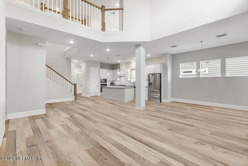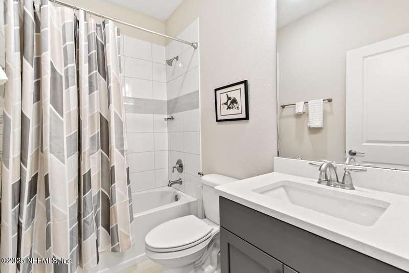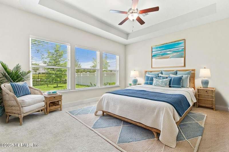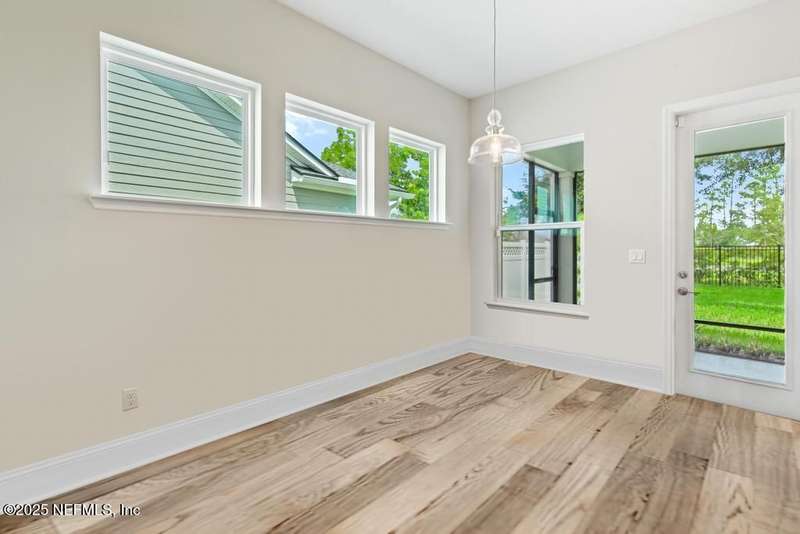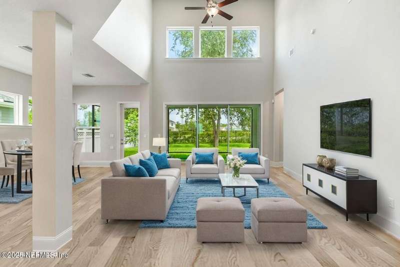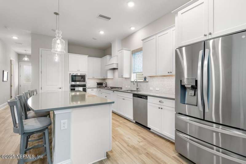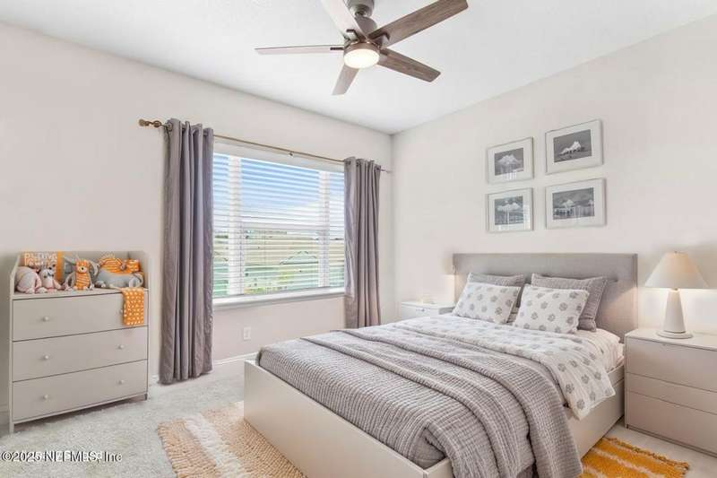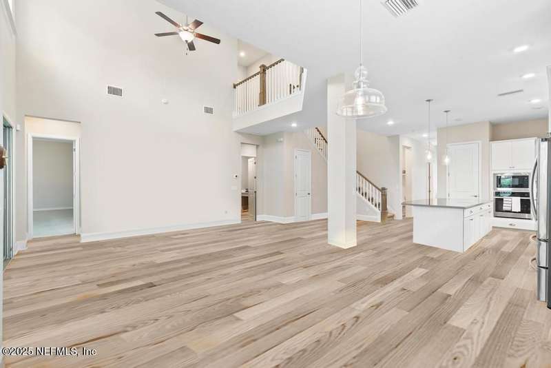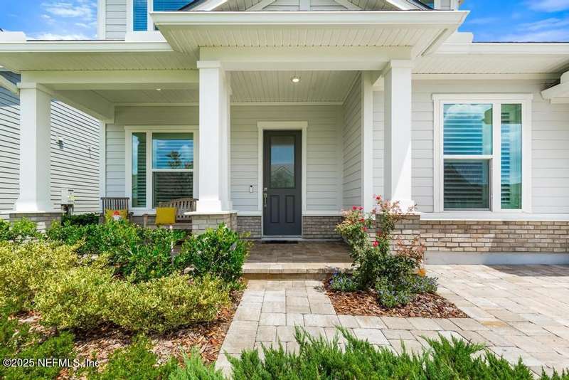 Welcome home to this wonderful home in a gated, upscale neighborhood with no CDD fees. This beautiful David Weekley home is nestled in the exclusive enclave of Oak Grove, within the desirable Silverleaf community. This spacious 4-bedroom, 3.5-bathroom residence offers the perfect blend of luxury, functionality, and style. This home has a bright and airy open floor plan featuring soaring ceilings and expansive windows that flood the living area with natural light. A versatile flex room at the entry provides the ideal space for a home office or formal living room. The thoughtfully designed main floor includes a private primary bedroom with ensuite bathroom, complete with a luxurious shower and generous walk-in closet. Upstairs, you'll find three additional bedrooms, two full bathrooms, and a loft - perfect for a kids' retreat or second living area. This versatile floor plan would be great for multigenerational living. The oversized tandem 3-car garage also includes a fourth bay with a window - ideal for a workshop or extra storage - and features durable epoxy floors and hanging storage shelves. Storage is abundant throughout the home, with a spacious laundry room and storage room downstairs, ample closet space throughout, and an upstairs walk-in attic. Enjoy outdoor living with an expanded paver driveway, a welcoming front porch with a sitting area, and a fully fenced backyard shaded by mature trees - offering plenty of room for a future pool. The screened lanai with upgraded epoxy flooring provides a serene space to relax or entertain. Located in sought-after St. Johns County, Silverleaf offers resort-style amenities including pools, pickleball and tennis courts, playgrounds, and a dog park - with a second amenity center opening in Spring 2026. Enjoy top-rated schools, convenient shopping, dining, and easy access to beautiful beaches. Skip the stress of building and start enjoying the Silverleaf lifestyle today - this exceptional home is move-in ready and waiting for you!