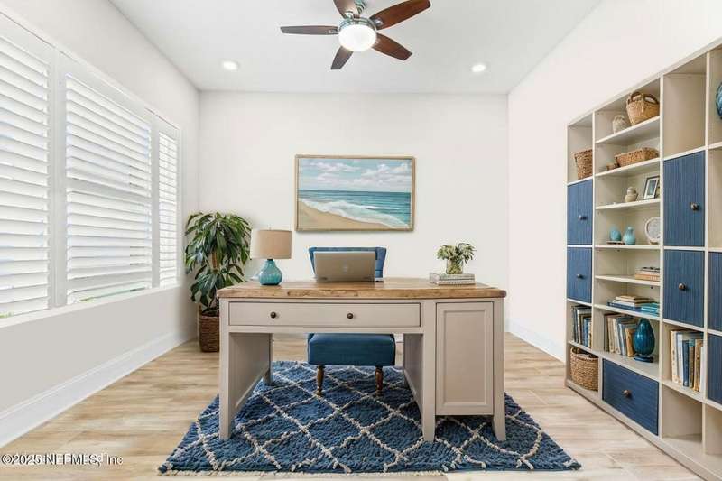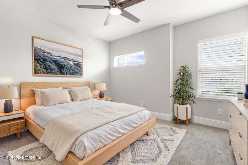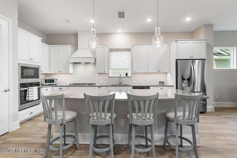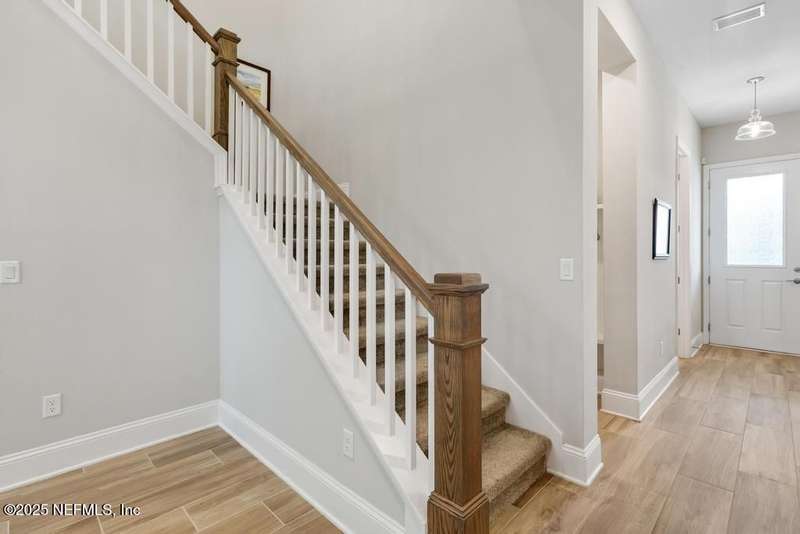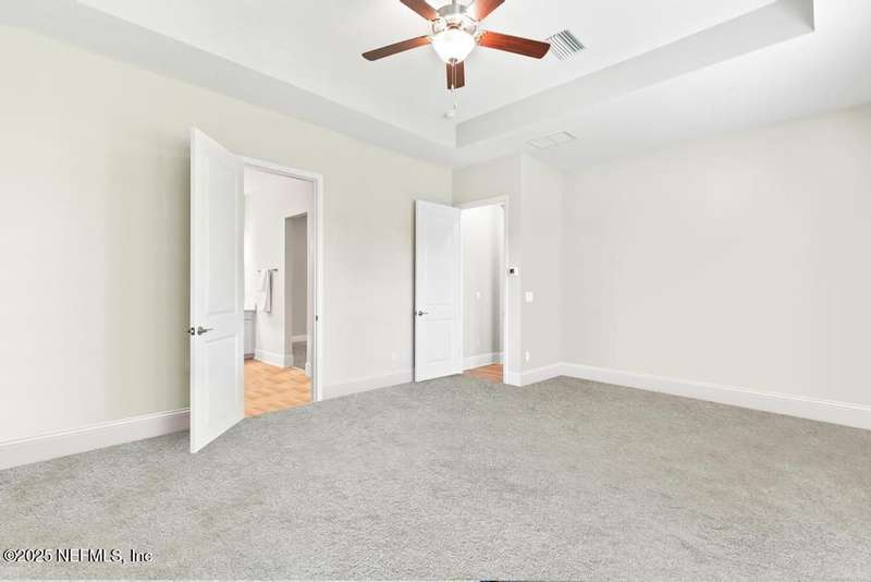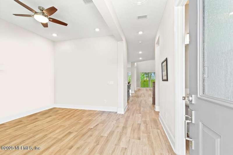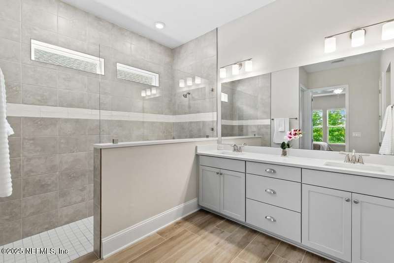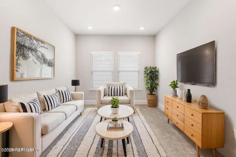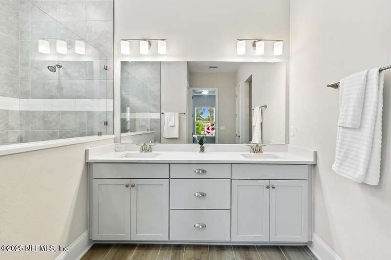 Welcome home to this wonderful home in a gated, upscale neighborhood with no CDD fees. This beautiful David Weekley home is nestled in the exclusive enclave of Oak Grove, within the desirable Silverleaf community. This spacious 4-bedroom, 3.5-bathroom residence offers the perfect blend of luxury, functionality, and style. This home has a bright and airy open floor plan featuring soaring ceilings and expansive windows that flood the living area with natural light. A versatile flex room at the entry provides the ideal space for a home office or formal living room. The thoughtfully designed main floor includes a private primary bedroom with ensuite bathroom, complete with a luxurious shower and generous walk-in closet. Upstairs, you'll find three additional bedrooms, two full bathrooms, and a loft - perfect for a kids' retreat or second living area. This versatile floor plan would be great for multigenerational living. The oversized tandem 3-car garage also includes a fourth bay with a window - ideal for a workshop or extra storage - and features durable epoxy floors and hanging storage shelves. Storage is abundant throughout the home, with a spacious laundry room and storage room downstairs, ample closet space throughout, and an upstairs walk-in attic. Enjoy outdoor living with an expanded paver driveway, a welcoming front porch with a sitting area, and a fully fenced backyard shaded by mature trees - offering plenty of room for a future pool. The screened lanai with upgraded epoxy flooring provides a serene space to relax or entertain. Located in sought-after St. Johns County, Silverleaf offers resort-style amenities including pools, pickleball and tennis courts, playgrounds, and a dog park - with a second amenity center opening in Spring 2026. Enjoy top-rated schools, convenient shopping, dining, and easy access to beautiful beaches. Skip the stress of building and start enjoying the Silverleaf lifestyle today - this exceptional home is move-in ready and waiting for you!