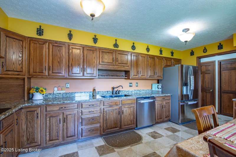 All-Brick Ranch Retreat! Set against a backdrop of rolling farmland and wide-open skies, this stunning all-brick ranch offers modern updates for everyday comfort and the space you need to enjoy country living at its finest. Perfectly situated on 2 peaceful acres, this property has been lovingly cared for and thoughtfully upgraded, making it truly move-in ready. Inside, you'll find nearly 4,000 sq. ft. of beautifully designed living space, where quality and detail shine. The home features 3 spacious bedrooms and 2.5 bathrooms, each bathroom enhanced with granite countertops and marble tile flooring. The kitchen is a showpiece with granite counters, marble tile floors, beautiful fixtures, double oven, and custom cabinets to include its own convenient desk area & 2 pantries. The mud room/ laundry room is massive, complete with tile floors, laundry sink, and closets galore to store all your cleaning and then some supplies! The lower level is fully finished, offering a large family room plus a bonus room that could serve as a guest bedroom, hobby space, or craft room and additional storage closets as well as a stylish ½ bathroom. Natural light fills the home through all-new windows, while thoughtful updates including a new roof and a whole-house generator provide peace of mind. NOW Outside awaits, the 14 x 36 outbuilding is ideal for a workshop or a place for all the big toys you'll want to have living the country life. There is also a large carport and an already in place foundation for an even larger building... when you're ready to build it! With 2 acres of open land, you'll have space to garden, entertain, or simply unwind and enjoy the panoramic country views. Just a short drive to Ft. Knox, Elizabethtown and surrounding areas! Call Today to schedule your Tour.