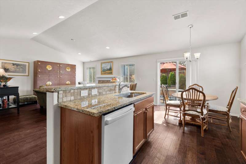 Seller is offering $5,000 credit with acceptable offer! Charming single-level home in Pettigrew Place, tucked away on a quiet cul-de-sac. This inviting home features an open floor plan with vaulted ceilings throughout, creating a bright and airy feel. The kitchen is complete with granite counters, an island, pantry, and adjoining dining area. A spacious living room centers around a gas fireplace with a mantel.The primary suite offers vaulted ceilings, dual closets, a double vanity, and a walk-in shower. Step outside to a serene backyard with mature landscaping, a koi pond, and two spacious side areas. The yard is fully fenced and equipped with sprinklers in both the front and back.Ideally located near restaurants, coffee shops, Larkspur Park & Senior Center, and The Forum Shopping Center—making errands or a day out effortless. Neighborhood amenities include a park, playground, and close access to the Larkspur Trail.