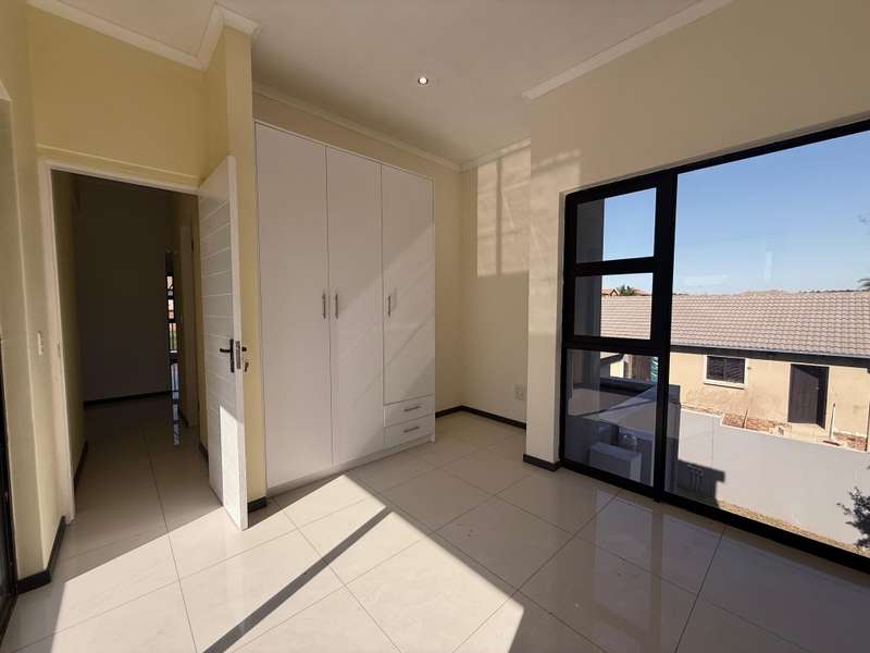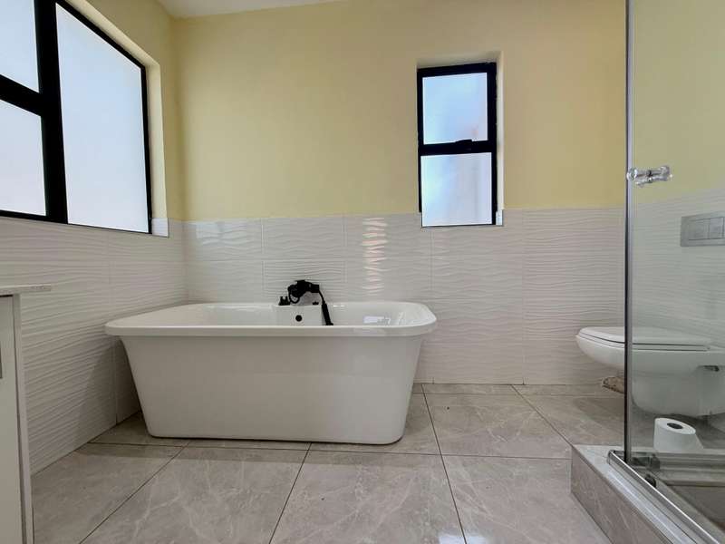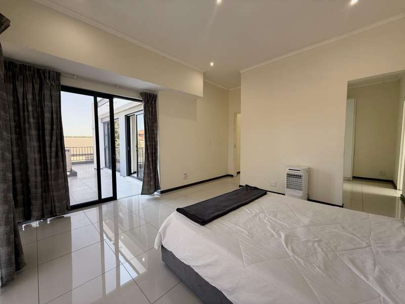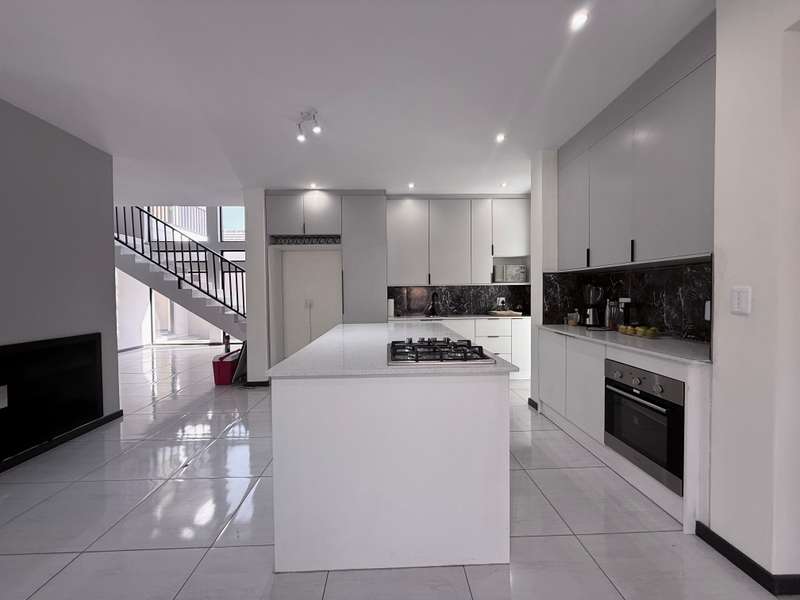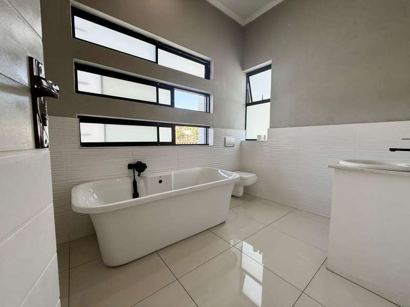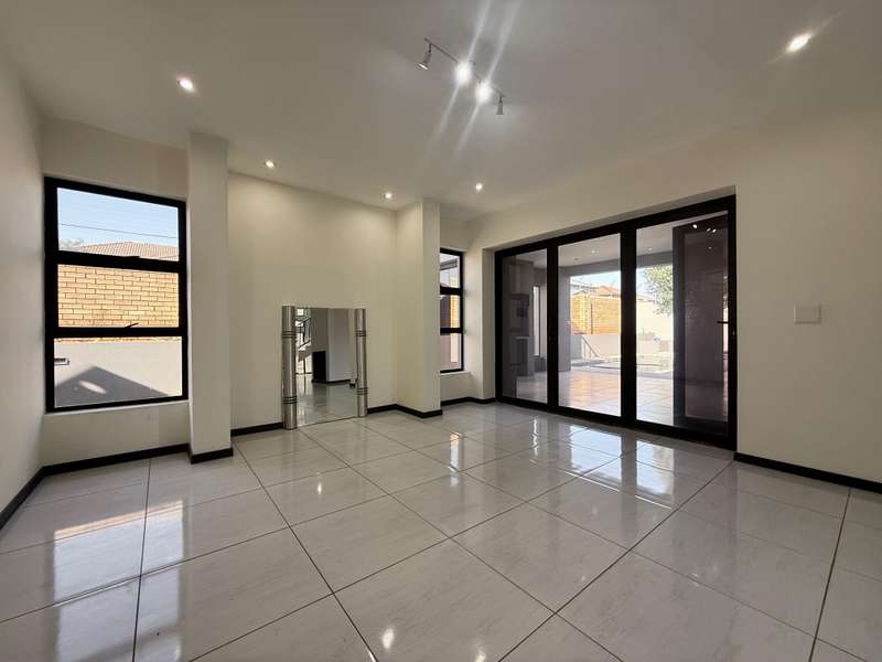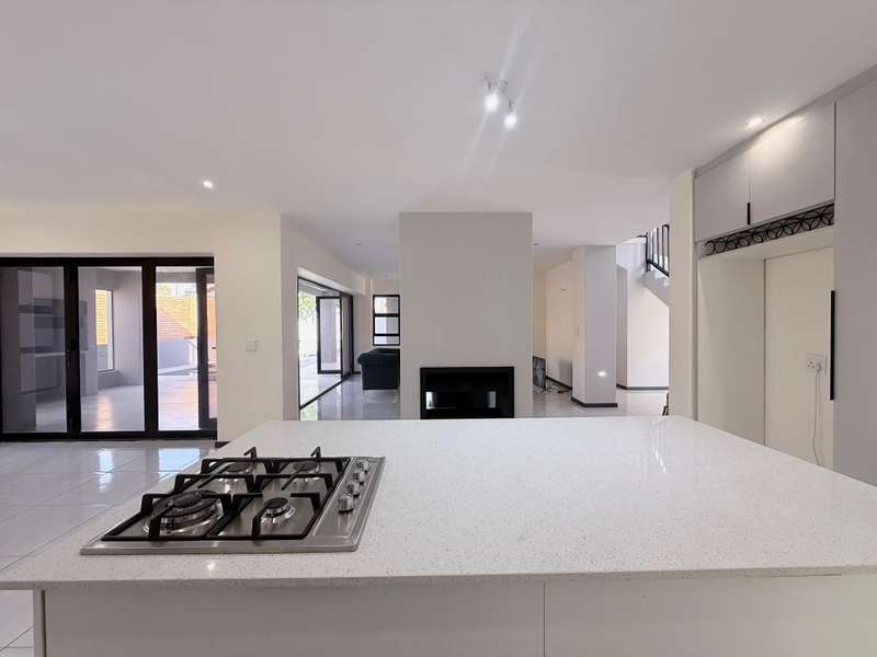 Welcome to your dream home, where modern design meets timeless elegance. This stunning 5-bedroom, 6-bathroom property is a masterpiece of comfort and functionality, offering every detail to make life effortless and enjoyable. As you arrive, a grand entrance welcomes you with sophistication. To your left, a serene pond adds a touch of tranquility, setting the tone for this exceptional home. Choose between two entrances: a secondary access point on the left or the main entrance, which leads into the heart of the home. Step through the main entrance, and you’ll find a thoughtfully designed layout. On your left is a stylish guest bathroom, while to your right lies the spacious lounge area, complete with a double-facing fireplace that creates a warm and inviting atmosphere. The lounge flows seamlessly into the dining area, which offers picturesque views of the backyard, perfect for entertaining or quiet family dinners. Adjacent to the dining area is a versatile open room, ideal as a kids’ lounge or pajama room, bathed in natural light and offering additional backyard views. The modern kitchen is a chef’s delight, complemented by a scullery with ample space for a washing machine and dishwasher, ensuring practicality without compromising on style. The outdoor amenities are just as impressive. A dedicated domestic accommodation includes space for a double bed and an en-suite bathroom. The scullery provides easy access to the washing line, streamlining your daily chores. The backyard is a haven for relaxation and entertainment, featuring a large pool, a braai area, and an open patio, surrounded by a spacious garden perfect for family gatherings or outdoor fun. The first bedroom, located downstairs, offers a peaceful retreat with room for a queen or extra-length queen bed and views of the sparkling pool. Upstairs, the high ceilings and modern stair rails lead to four additional bedrooms, each with balcony access. Three of these bedrooms comfortably fit double or queen beds, with one featuring its own private balcony overlooking the entrance. Two standard bathrooms upstairs cater to these bedrooms, one with a bathtub and the other with a shower. Master Suite The luxurious master bedroom is a sanctuary of comfort, with space for a king-sized bed and stunning views of the garden and main road. A walk-in closet with ample storage and a sleek, modern en-suite bathroom complete this exquisite retreat. Perfect for Family Living This home is designed for both everyday living and special occasions, offering a seamless blend of indoor and outdoor spaces. Whether hosting guests, relaxing by the pool, or enjoying a quiet evening by the fireplace, this property is a true modern masterpiece. Discover the perfect balance of style, comfort, and functionality in this exceptional home—your ultimate lifestyle awaits.