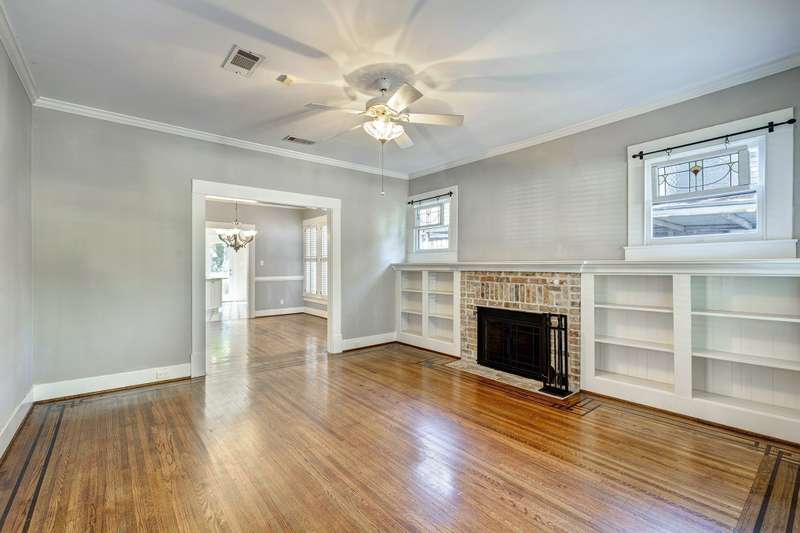 Come in and see this beautifully crafted-style bungalow 2 bedrooms 2 baths, 2-car garage in the heart of Houston's Montrose, Rice University, Medical Center, Museum District, Downtown and St. Thomas. Going up steps to enter this home, you will see a large relaxing porch to enjoy your favorite beverage. This home has been updated, but still has the charm with gleaming hardwoods throughout, stained glass on each side of the fireplace, French doors, ceiling fans and bookshelves. Next room is your formal dining, which has lots of windows that brings in such soft and bright light. Next is your updated kitchen with gas cooking, lots of wonderful storage, cabinets, breakfast island and all of your great appliances. Both bathrooms have been updated. Primary bathroom has double sinks, soaking tub, shower and huge closet space. Primary bedroom is large and so relaxing with French doors that go out to your brand new deck to have your morning coffee. All per Seller