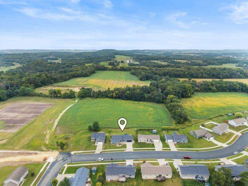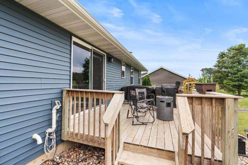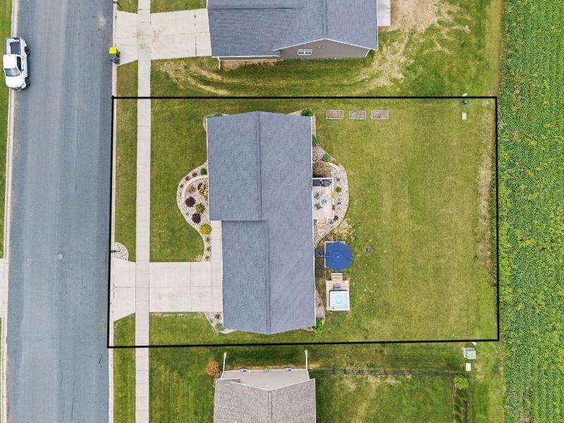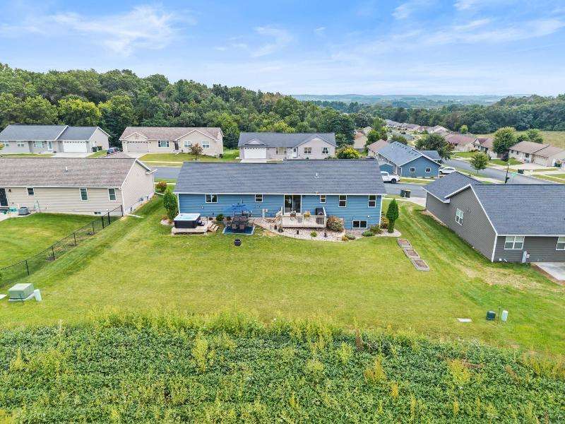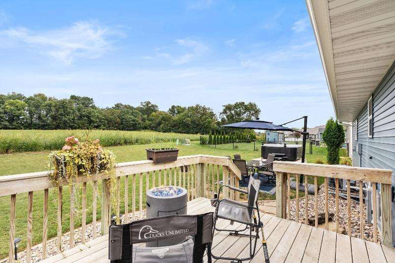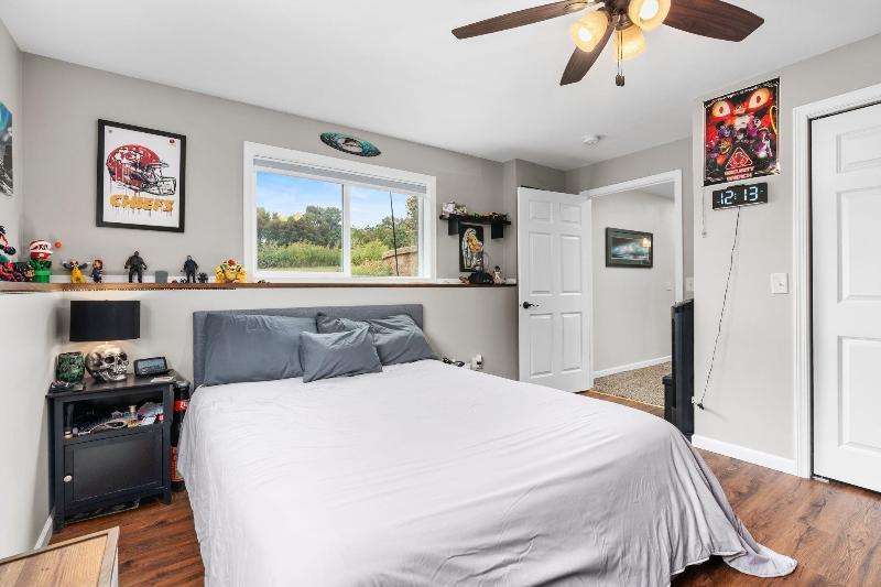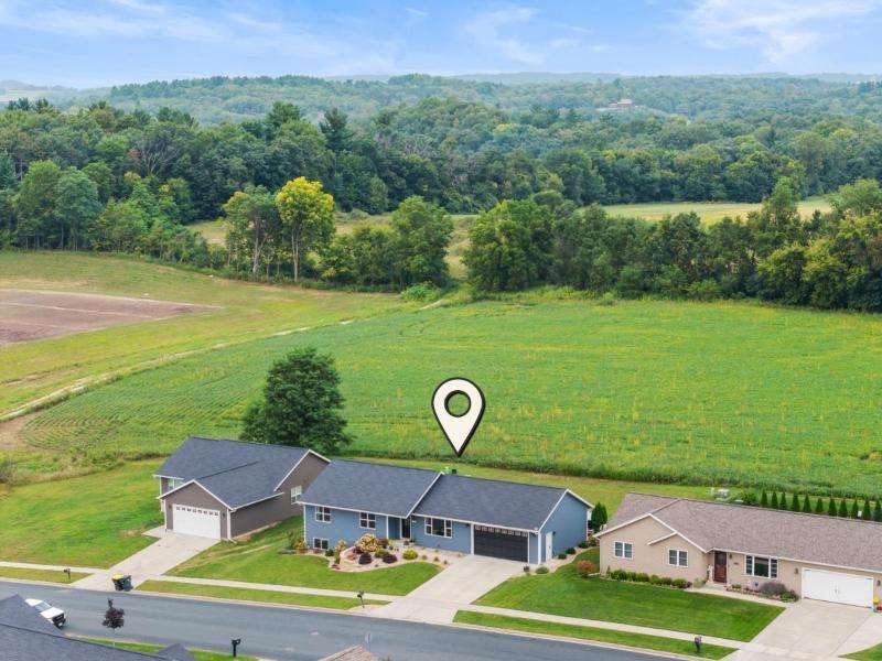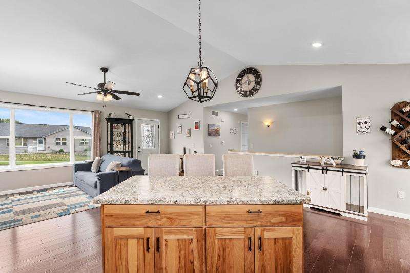 Stop the car! The curb appeal on this home is too good to pass up. This beautifully finished ranch features vaulted ceilings, 4 bedrooms, & 3 full baths. The eye-catching hickory kitchen cabinets & breakfast bar create the perfect spot to gather. Step outside to your deck & take in peaceful views of the tillable fields, or relax in the bubbling jetted Beno spa. It's an ideal setup for hosting neighborhood events or birthday celebrations, & you're just a block away from the brand-new Legends Park, complete w/soccer fields, an agility course, & a splash pad! Inside, the primary suite offers a spacious walk-in closet & ensuite bathroom. The lower level features a large 4th bedroom w/oversized windows, a naturally lit family room(perfect for Packer Games)a flex room/office, & a storage room!
