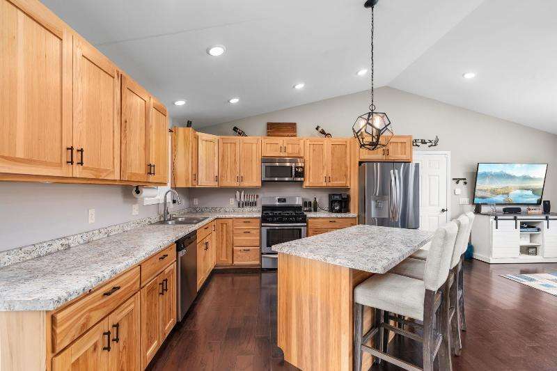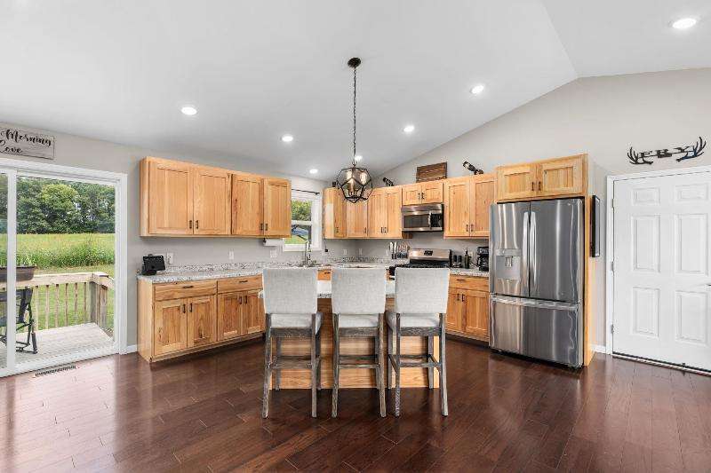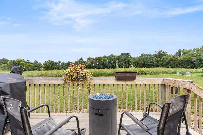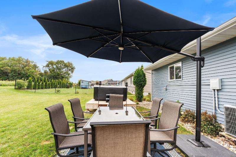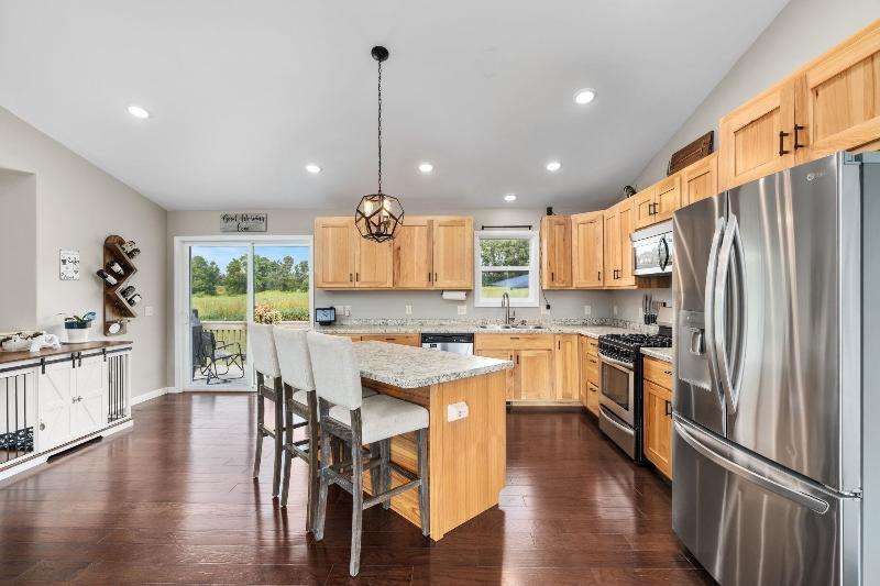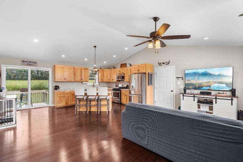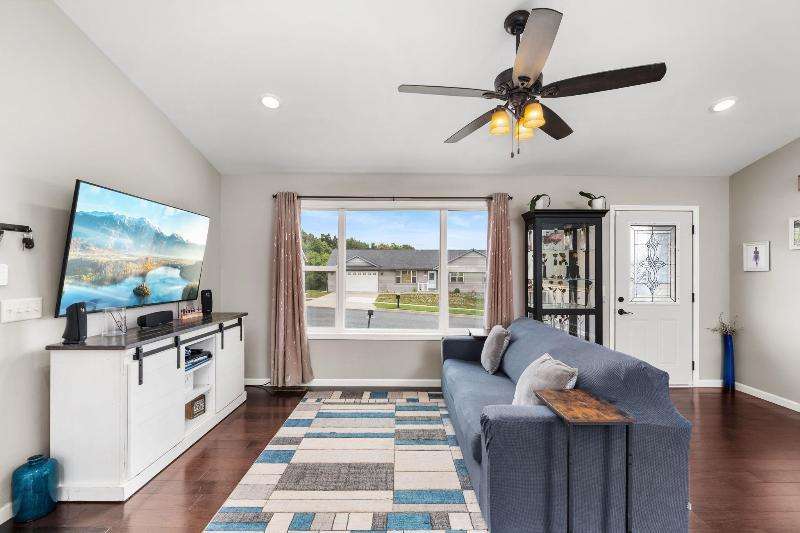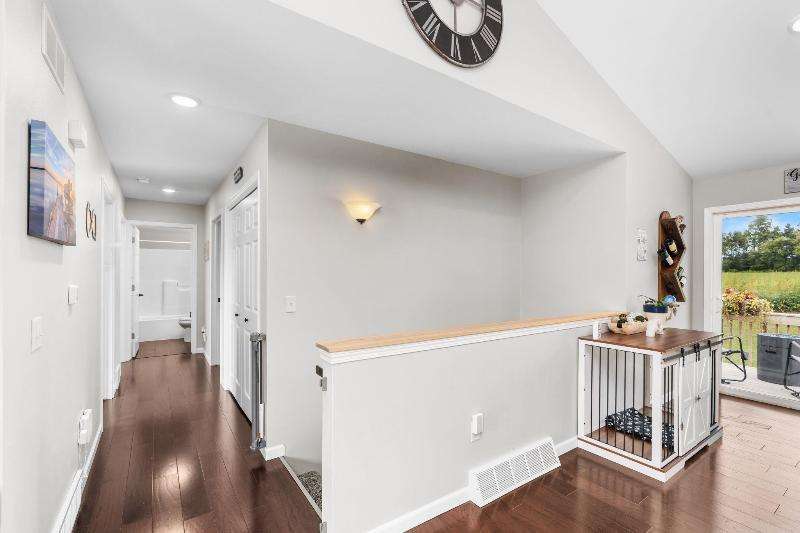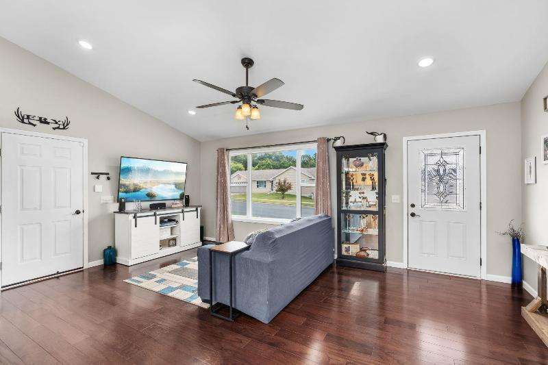 Stop the car! The curb appeal on this home is too good to pass up. This beautifully finished ranch features vaulted ceilings, 4 bedrooms, & 3 full baths. The eye-catching hickory kitchen cabinets & breakfast bar create the perfect spot to gather. Step outside to your deck & take in peaceful views of the tillable fields, or relax in the bubbling jetted Beno spa. It's an ideal setup for hosting neighborhood events or birthday celebrations, & you're just a block away from the brand-new Legends Park, complete w/soccer fields, an agility course, & a splash pad! Inside, the primary suite offers a spacious walk-in closet & ensuite bathroom. The lower level features a large 4th bedroom w/oversized windows, a naturally lit family room(perfect for Packer Games)a flex room/office, & a storage room!