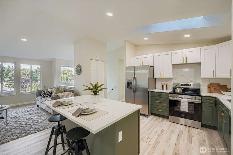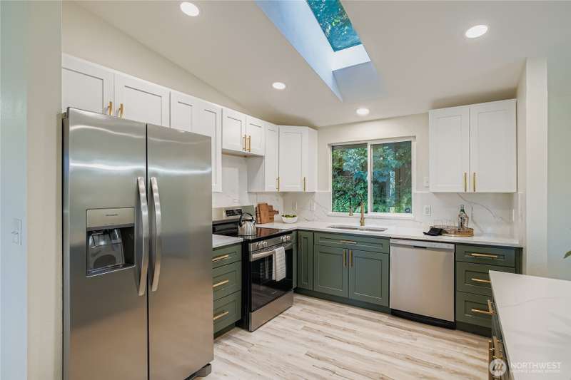 Welcome home to this beautifully renovated 4-bedroom, 3-bathroom gem! Thoughtful updates throughout include a brand-new kitchen, new bathrooms, new flooring, & all-new appliances. The bright & open living space is perfect for gatherings with friends, while the kitchen shines with a skylight that fills the space with natural light and opens to a deck overlooking the backyard ideal for indoor-outdoor entertaining. Retreat to the spacious primary suite with its own private bathroom, designed for relaxation. The lower level offers even more living space with a comfortable family room, an additional bedroom, & a full bathroom—perfect for guests or multi-generational living, modern updates, & two car garage. Close to 15 ,167, golf course