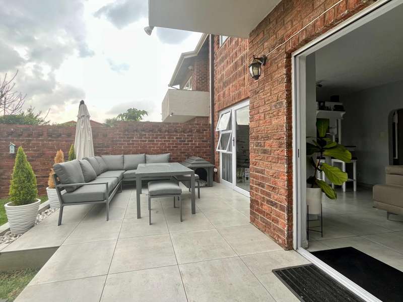 Beautifully Renovated Duplex in Secure St Andrews Complex ?Çô Off-Grid Living at Its Best Enjoy a lifestyle of peace, comfort, and self-sufficiency in this stunningly renovated 4-bedroom duplex townhouse, nestled in one of St Andrews?ÇÖ most sought-after and well-managed complexes. This inviting home offers a tiled double garage, with direct access via a fully fitted laundry room that leads into a sleek granite kitchen. The open-plan layout connects the kitchen to a dining area, with an opening to the lounge/TV room ?Çö perfect for relaxed family living and effortless entertaining. Sliding doors open out onto an extended patio, overlooking a compact, beautifully maintained garden ?Çö a tranquil retreat for morning coffee or summer evenings. Upstairs, the home offers four generous bedrooms, or three plus a fitted study. The main and second bedrooms are north-facing with a sunny balcony, off the main bedroom. Key Features: 4 bedrooms / 3 plus study 2 bathrooms + guest cloakroom Open-plan granite kitchen and dining Extended patio and private garden Tiled double garage with direct access Fitted laundry room External staff bathroom 211 sqm under roof Pet-friendly (with permission) Complex pool, clubhouse & visitors?ÇÖ parking True Off-Grid Living Forget load shedding and water outages ?Çö this home is fully equipped with 16 solar panels and a battery backup system, powering the entire household efficiently. Two JoJo tanks provide a constant, reliable water supply, significantly reducing your monthly utility costs. Location, Convenience, and Community Perfectly located for families, the complex is close to top-rated schools, with easy access to major routes, shopping centres, and community facilities. Price Option The full off-grid system is included, but should you prefer to remove the solar setup, the price is negotiable with offers around R2.7 million considered. Move-in ready ?Çô just unpack and enjoy!