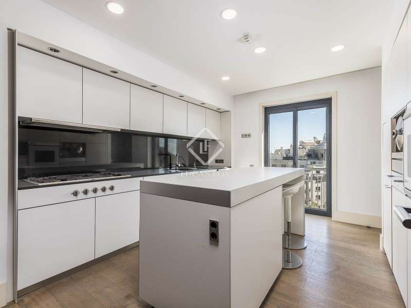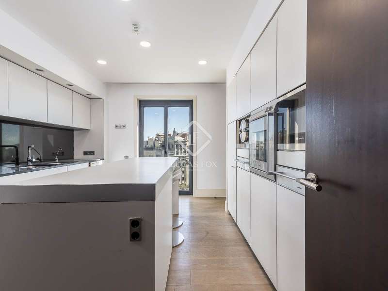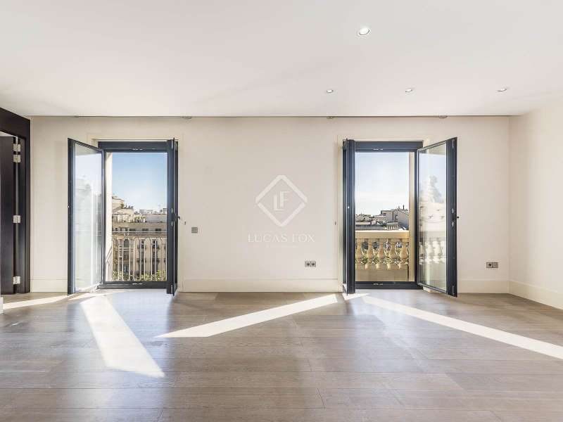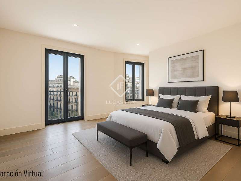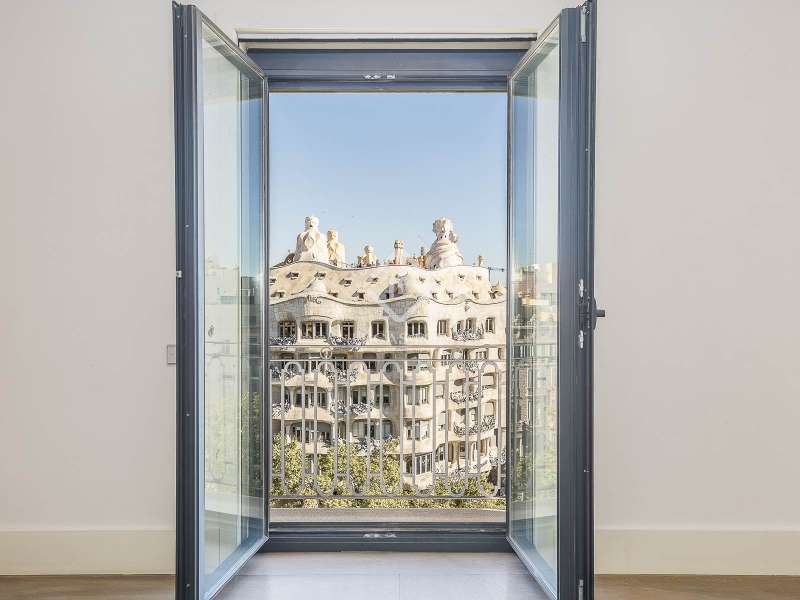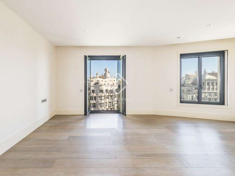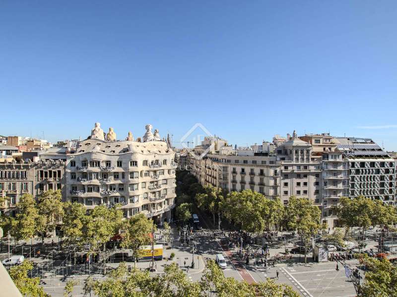 Lucas Fox presents this magnificent property located on the top floor of a classic building completely renovated in 2005, opposite one of Barcelona's most iconic landmarks: La Pedrera. The property, in excellent condition, offers a functional and very bright layout thanks to its orientation and the large windows that frame unique, almost postcard-like views over Passeig de Gràcia. The day area consists of a spacious living-dining room with two large windows that fill the space with natural light and allow you to enjoy the unmistakable views of La Pedrera. The living room opens directly into the open, fully equipped kitchen, as well as a practical guest toilet. On the same main facade, we find the generously sized master suite, with a reading area next to the large windows, an elegant dressing room, and a full bathroom with a bathtub, separate shower, and double sinks. The rear area houses a multipurpose space ideal as an study or service area, two additional bedrooms (one double and one large single) that share a full bathroom , and a bright interior gallery. The apartment has a ducted air conditioning system and an original home automation system from the time of the renovation. A unique opportunity to acquire a property in one of Barcelona's most coveted addresses, with unparalleled views and the timeless charm of Passeig de Gràcia.