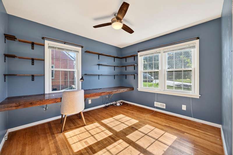 Welcome to this charming Cape Cod-style home nestled in the desirable Gibbs Hill neighborhood. Step into the inviting main level featuring a spacious living area bathed in natural light. The dining area is accented by built-in shelves for display or storage. The kitchen has a generous workspace, pantry, and an inviting breakfast nook. Rounding out the first floor are two bedrooms & a full bath with easy access from the main living areas. The second floor includes two bedrooms & a full bathroom, creating a cozy and flexible living area. A full unfinished walk-out basement provides generous space for storage, projects, or future finishing, complete with built-in shelving. Discover the expansive fenced-in backyard, perfect for pets and play. Minutes from downtown, parks, & all the best Staunton has to offer.