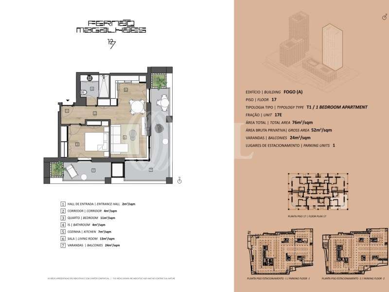 Apartamento T1 novo, com 52 m2 de área bruta privativa, varanda, e estacionamento privado, inserido no condomínio privado Fernão Magalhães 127, no Bonfim, Porto. Os apartamentos possuem pavimento de madeira nobre, cozinha totalmente equipada com eletrodomésticos Bosch, ar condicionado, muita luminosidade e amplas áreas. O Fernão Magalhães 127 é um projeto de arquitetura moderna e cosmopolita, inspirado no mais exclusivo design de condomínios, pelo que, para além de estacionamento, arrecadação, pontos de carregamento para carros elétricos, sala de condomínio, oferece um inovador conjunto de amenities exclusivo para os residentes, tais como sala de jogos, horta comunitária, ginásio, campo de Padle e uma área de co-working. Os apartamentos foram projetados com elevados padrões de qualidade e com um design moderno e funcional, adaptado às necessidades de utilização e conforto de uma vida moderna. No Fernão Magalhães 127 todos os ambientes foram pensados ao pormenor, proporcionando um novo conceito de qualidade de vida. Localizado na Avenida Fernão Magalhães, numa das mais antigas áreas residenciais do Porto, beneficia de uma grande oferta de comércio, serviços, estabelecimentos de ensino, de uma rede de transportes eficiente e excelentes acessos, destacam-se a proximidade à Via de Cintura Interna (VCI) e à estação de metro Campo de Agosto. Está a 2 minutos walking distance do Vila Galé Hotel e a 5 minutos do Porto Business Plaza. Está a 6 minutos driving distance do Mercado do Bolhão e da Estação da Campanhã, a 8 minutos de Santa Catarina e a 9 minutos da Avenida dos Aliados. Está a 23 minutos do Aeroporto Francisco Sá Carneiro, no Porto. O condomínio ideal para quem procura uma nova forma de descobrir o Porto. Categoria Energética: A #ref:77911