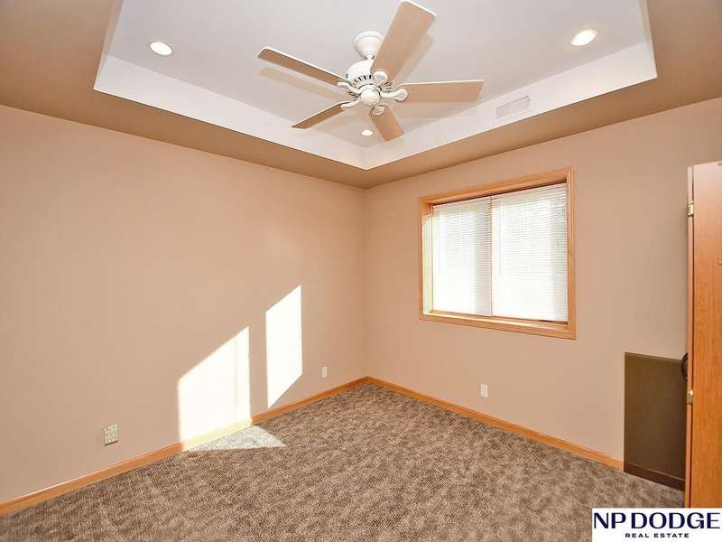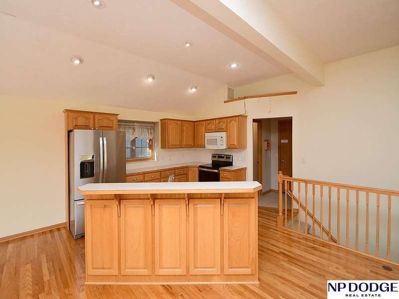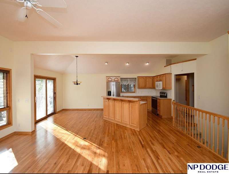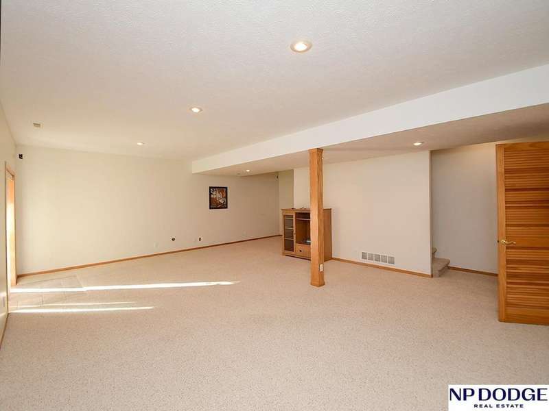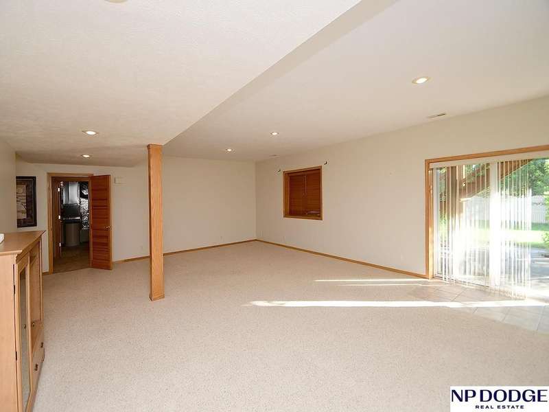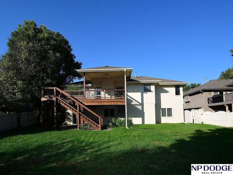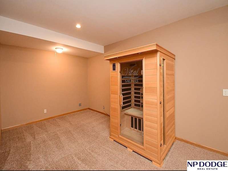 No backyard neighbors! Wonderful 4-bed 3-bath 3-car walkout ranch in Millard school district. (Millard West High School.) Low tax levy 2.087398! Great room with wood flooring & fireplace. Newer kitchen appliances. Snack bar & pantry. 3 bedrooms up. Main floor laundry. Lower level has 4th bedroom with portable wardrobe, 3/4 bath, rec room and exercise room. Sauna included. Large, fully fenced private backyard. Patio and large covered deck. Sprinkler system. HVAC system 2020. Roof 2013. Water softener, electric air filter. Hardi Plank siding and poured foundation. Lots of storage space.
