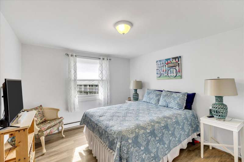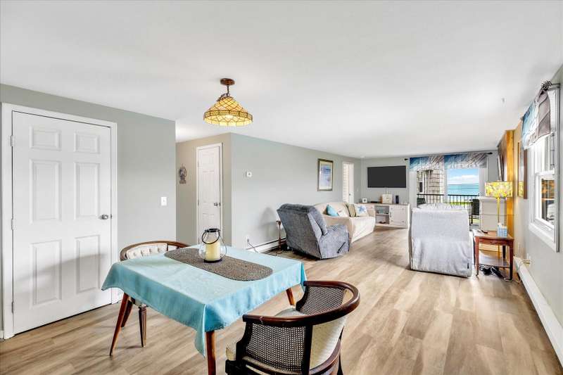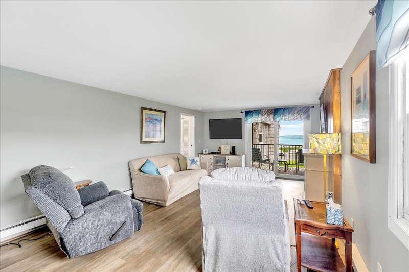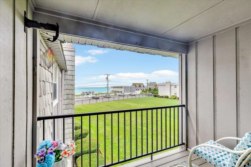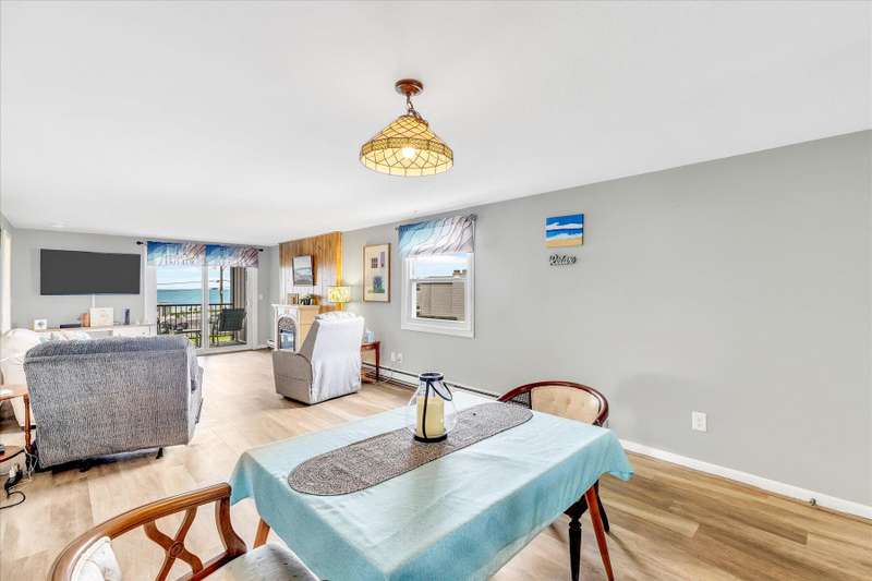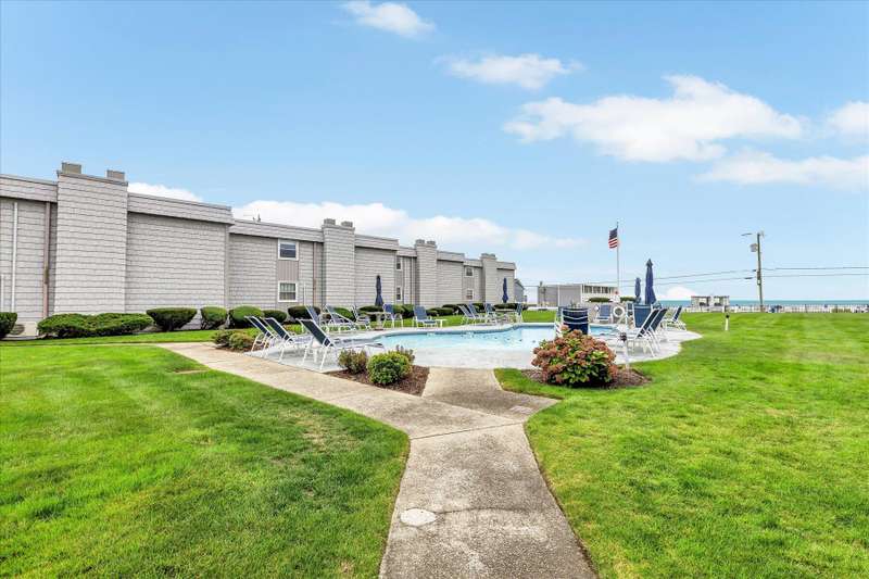 Year-Round Condo with Ocean Views & Deeded Beach Access in Dennisport. Enjoy seaside living in this bright and inviting 2-bedroom, 2-bath condo just steps from the beach. Located on the second floor, this well-maintained unit offers a spacious living/dining area, a large eat-in kitchen, and a private porch with ocean views perfect for morning coffee or evening relaxation. The primary bedroom includes an en suite full bath, while the second bedroom is served by a full guest bath. Additional amenities include a private basement storage room with in-unit laundry, an assigned parking space, and access to a heated in-ground pool. The condo association covers essentials like building maintenance, landscaping, trash removal, snow plowing, basic cable, and pool maintenance for a monthly fee of $677. This Dennisport community offers deeded beach rights directly across the street. Association rules require permanent residents to be 18+; however, guests may be of any age. No pets allowed.