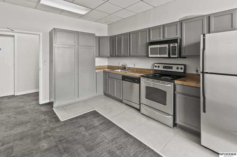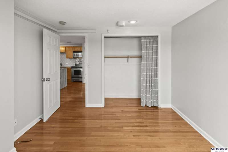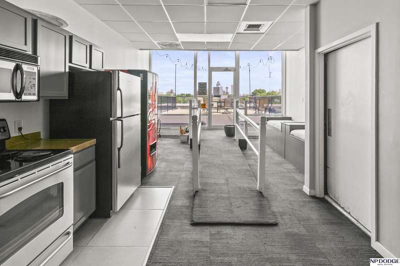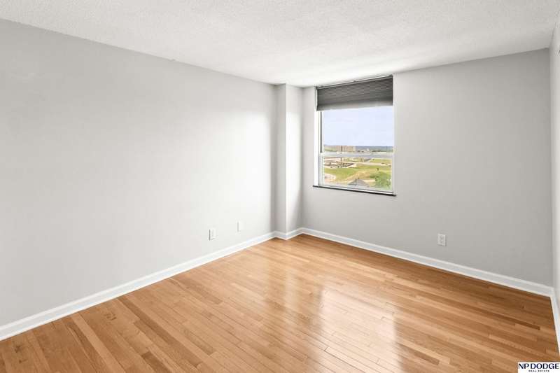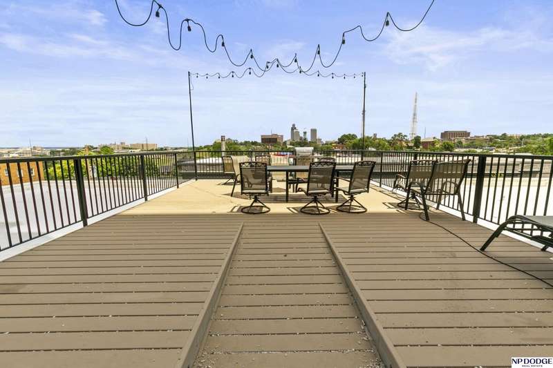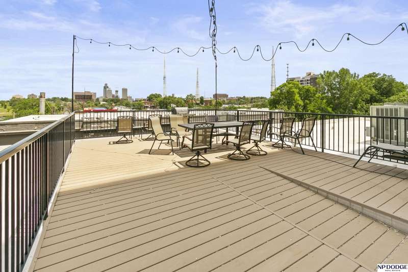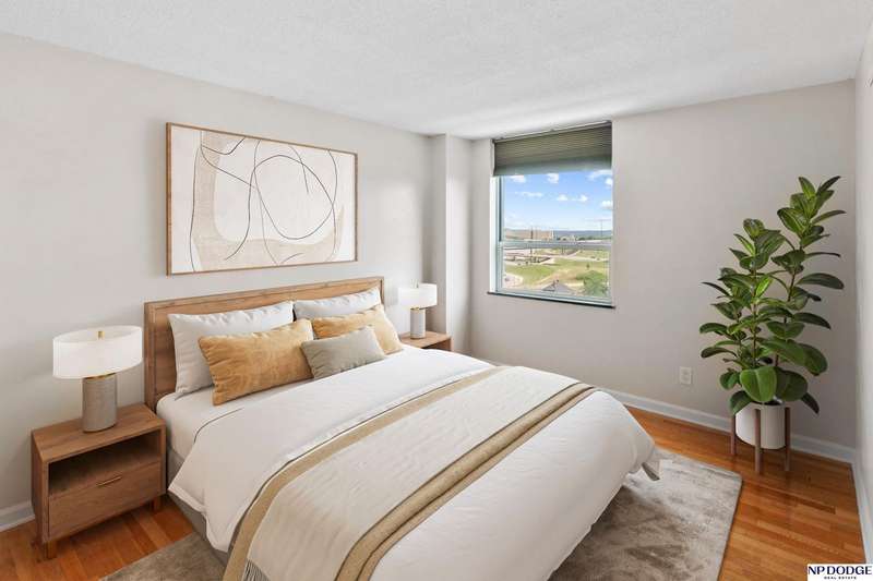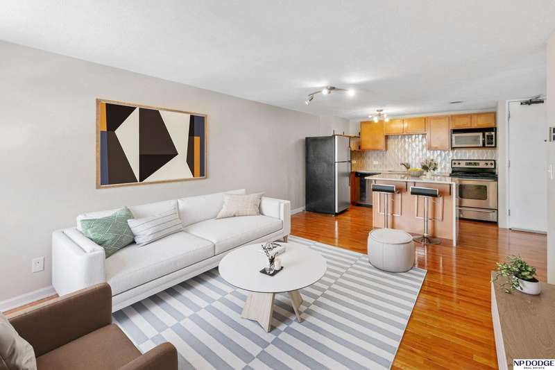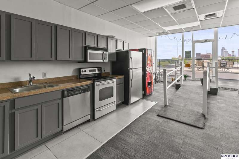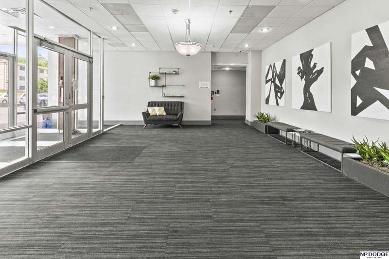 This open-concept corner unit condo features one bedroom, one bathroom, and one underground parking spot. Facing east, you'll enjoy a stunning view of downtown Omaha. The kitchen boasts a gorgeous granite waterfall countertop, trendy backsplash, stainless steel appliances, and accent shelving. The updated bathroom includes a bath/shower combo. Amenities include access to a fitness center, secured entry, free laundry on each floor, and a rooftop patio with a grill and shared kitchen. Water, gas, sewer, trash, and heating/AC are covered by the HOA. Just minutes from UNMC, Creighton, Blackstone, UNO, and downtown. AMA