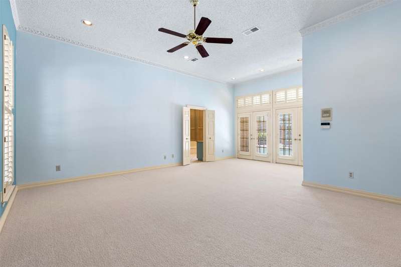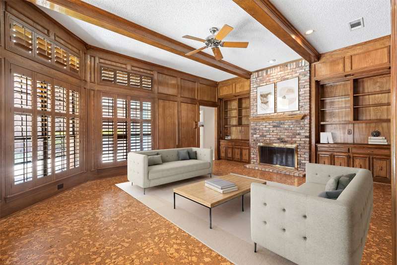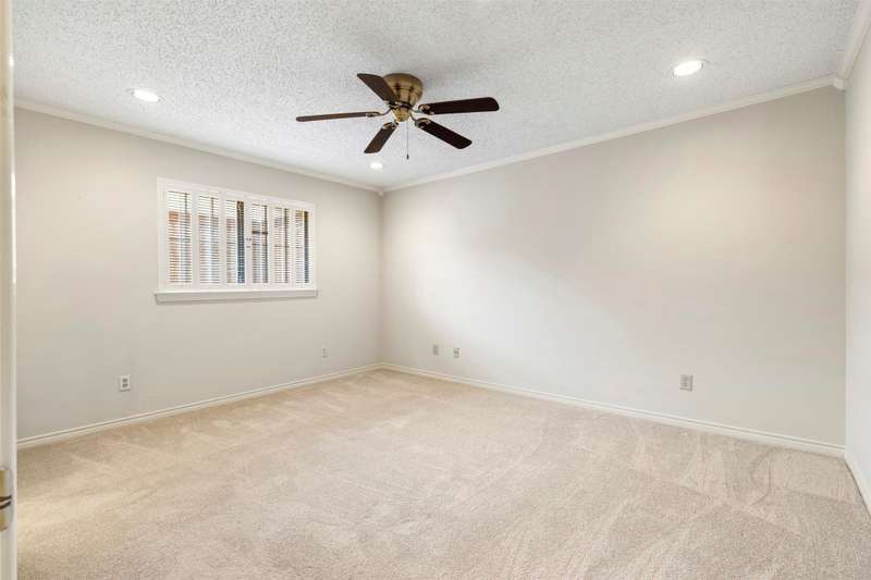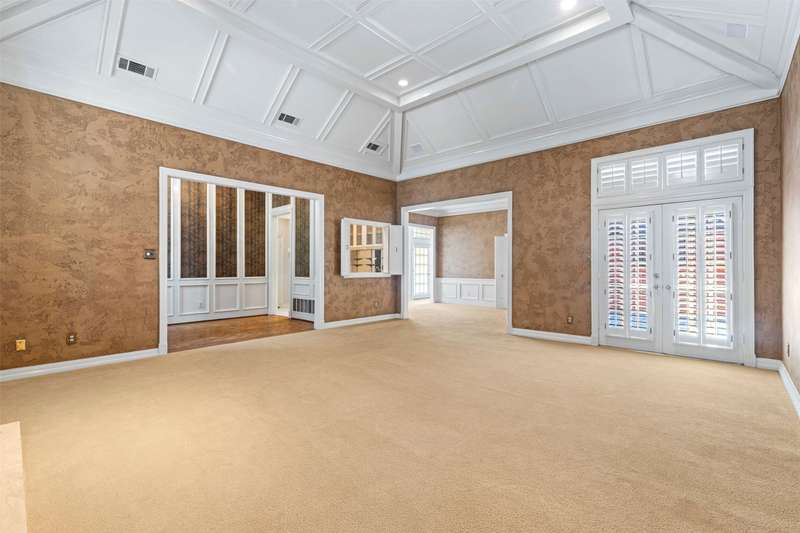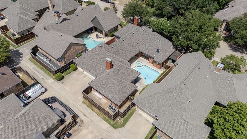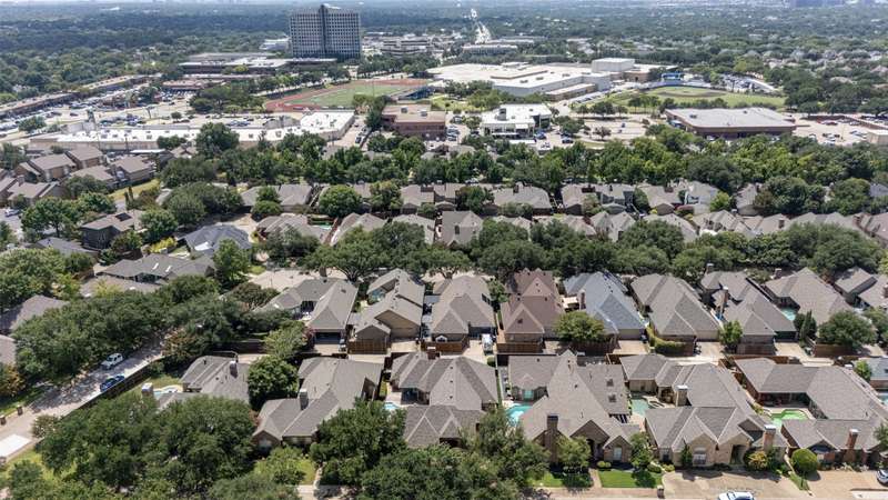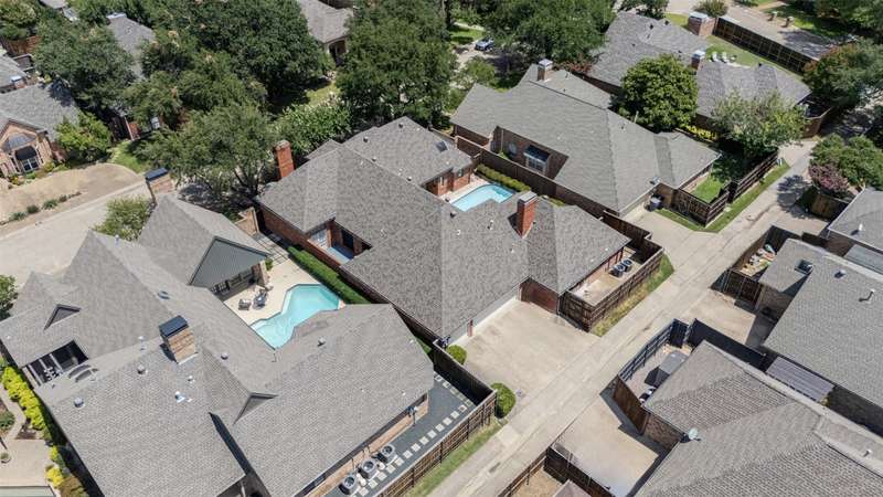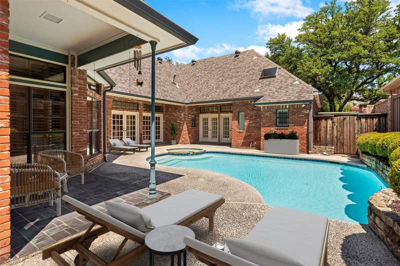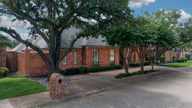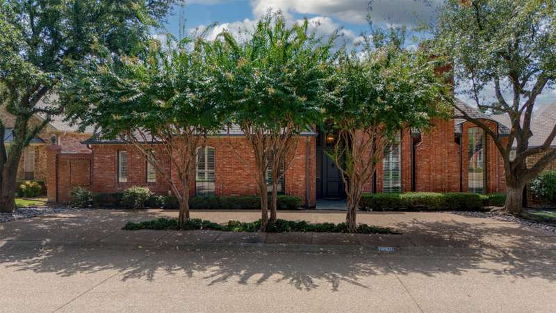 Nestled in the prestigious Prestonwood West neighborhood, this exquisite one-story residence offers luxurious living with a laid-back lifestyle perfect for entertaining or every day life. Featuring three bedrooms, three-and-a-half baths, and three spacious living areas, the home showcases exceptional craftsmanship with 1012 foot ceilings, custom crown and base moldings, wainscoting, and rich built-in cabinetry.A graceful formal living room welcomes you with abundant natural light and a cozy fireplace, while the formal dining room is served by a walk-in wet bar, ideal for hosting gatherings. The breakfast nook includes a built-in china cabinet, and the gourmet kitchen is designed for both casual and formal entertaining with ample prep space and storage. The expansive den features vaulted ceilings, gas-log fireplace, beautiful cork flooring, and built-in bookshelves, creating a warm and inviting backdrop for everyday living. The primary suite offers a peaceful retreat with a sitting area, walls of windows leading to the pool, and a generous ensuite bath boasting large countertops, soaking tub, separate shower and a custom walk-in closet. Two secondary bedrooms share a convenient Jack & Jill bath. Thoughtfully designed, the home wraps around a sparkling pool and spa, offering views from multiple rooms and seamless indoor-outdoor flow. Step outside to enjoy the covered patio and lush landscaping.Additional features include plantation shutters throughout, 3-car garage and circle drive, full size laundry room with sink, and two gas fireplaces.Minimal HOA fees include HOA-maintained front yard maintenance. Located near Preston and Frankford with easy access to the Dallas North Tollway, George Bush Turnpike, and Preston Road, this beautifully maintained home is minutes from premier shopping, dining, and everyday conveniences.A rare opportunity to enjoy refined, single-story living in one of North Dallas most desirable communities.