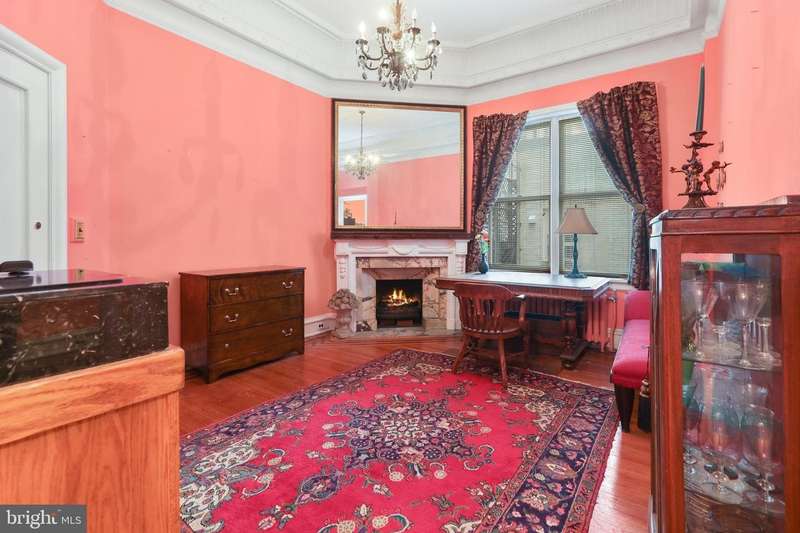 Perfect Pied-a-Terre in prestigious Washington Apartments located on Historic Mount Vernon Place! Beaux-art building built in 1906, it boasts high ceilings, plaster walls, original details, marble fireplace, hardwood flooring, and mahogany doors. This one bedroom apartment is located on the first level with access to the courtyard. Taxes, water, heat, and 24 hour security are included in the coop fee. There are no transfer costs at closing, as you own stock in the corporation. This is a must see!!