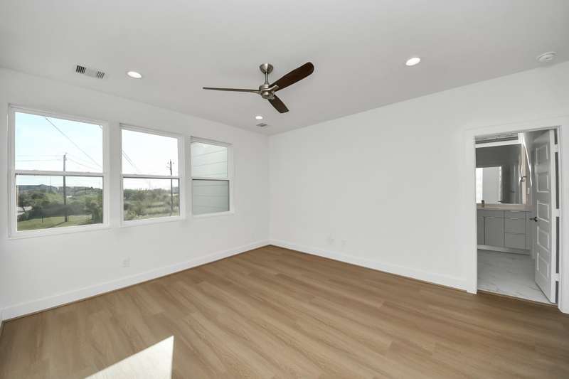 Welcome to this modern 3-bedroom, 2.5-bath home featuring an open-concept living and dining area, designed for seamless entertaining and everyday comfort. The home offers a versatile upstairs flex space, perfect for a second living area, or home office. Enjoy thoughtful touches throughout, including recessed ceilings above the main living space and in the primary bedroom, which also features a beautifully finished accent wall. The primary suite includes double sinks, a walk-in shower, a garden tub, and a spacious walk-in closet. Additional highlights include a walk-in laundry room, a generous backyard with no back neighbors, and a covered patio, ideal for outdoor entertaining. This home features the Modern selection package, showcasing timeless finishes that complement its clean, modern design. Please visit model home at 2313 Via Laura Lane. Open Wednesday-Sunday 12PM-5PM. Monday & Tuesday by appointment only.