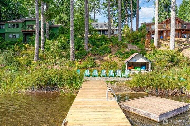 Lake Life is calling! 100k remodeled Quintessential Lakehouse w/cozy, inviting vibes: Cedar T&G, quartz & subway, big window walls, seamless connection to nature, resident eagles. Expansive VIEWS, 75’ quality lakefront, pebble beach, boathouse, 2 docks! Tranquil 73-ac, electric-motor Lk has year-round trout fishing. Mins to Alderbrook & local seafood legends (Hama Hama, DeNotta, Tom Farmer, Union City Mkt, Hook & Fork). FIBER internet, A/C, new windows, paint, paver steps to beach. Ranks in TOP 10% of Mason Cty Vacation Rentals, Guest Fav, 100 (5-star) reviews! GROSSING $133,000 in 2 yrs (50% yr booked). 10 min to town, parks & golf, hiking, recreation. FURNISHED for turn-key getaway or investment. Hood Canal Adventure Awaits, Kayaks Ready!