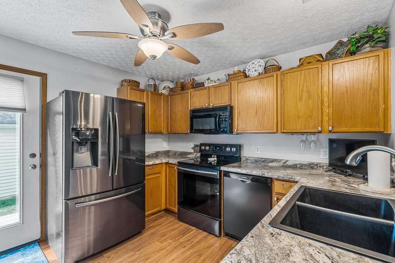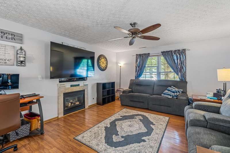 Adorable freestanding Cape Cod condo in the Village at Lehner Woods. This home features a convenient first-floor primary suite, first-floor laundry and half bath, and a cozy family room with gas-log fireplace that flows to the dining and kitchen area. Upstairs offers two bedrooms and a full bath. Enjoy relaxing on the welcoming front porch or private rear patio. Includes a detached garage and an additional parking pad for guests. Showings start 09/12/2025.