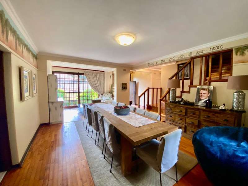 Timeless design and cozy residence in the gated community of Waterkloof featuring 4 bedrooms and a separate and private flat-let with its own private entrance. The ground level includes areas for relaxation and socialising, featuring a very large kitchen and games room. The top floor features four very spacious bedrooms and three bathrooms, with two of the bedrooms including their own en-suite and either a lounge or study area. A spacious garden featuring a swimming pool and lapa also includes a fully fitted flat for guests with its own secluded courtyard and entrance with parking area. A home for the busy and large family who appreciate their personal spaces.