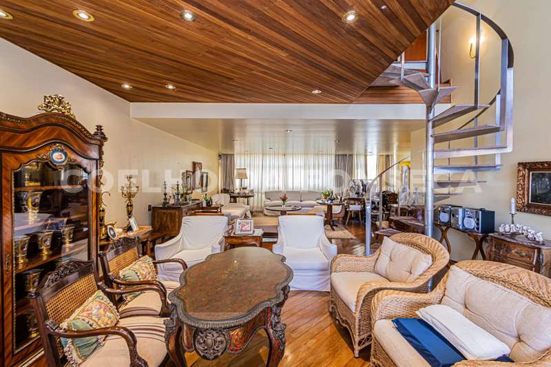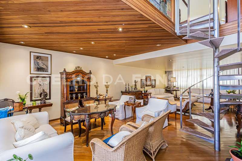 Apto em andar alto com linda vista definitiva, face norte, amplo living, único apto no predio com pé direito duplo onde foi possivel realizar mezanino sobre o living com a mesma bela vista, 5 dormitórios sendo duas suites a master com dois closets grandes