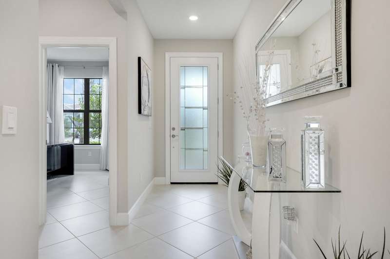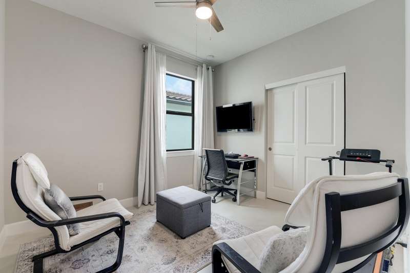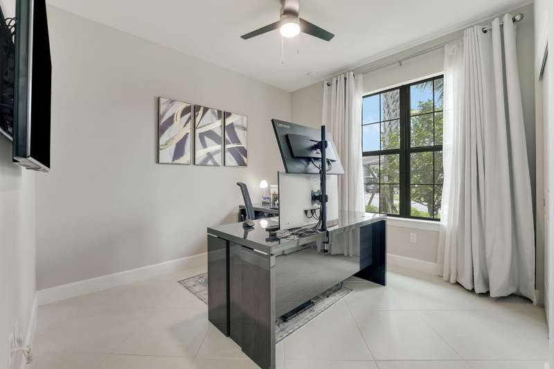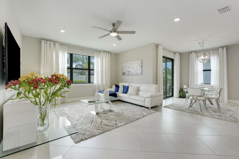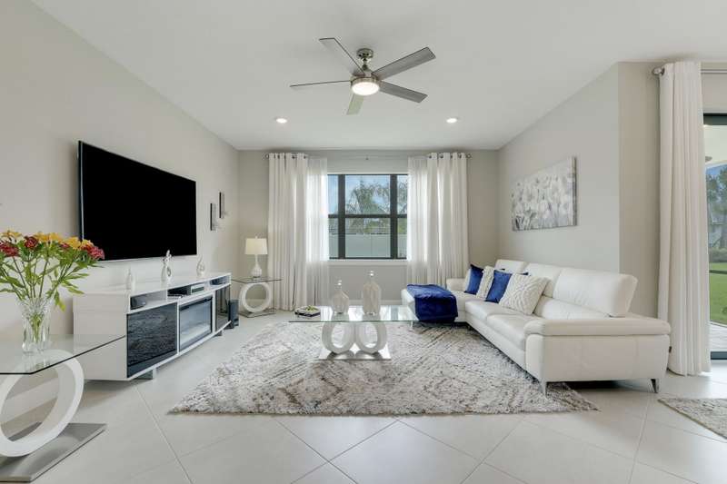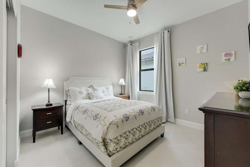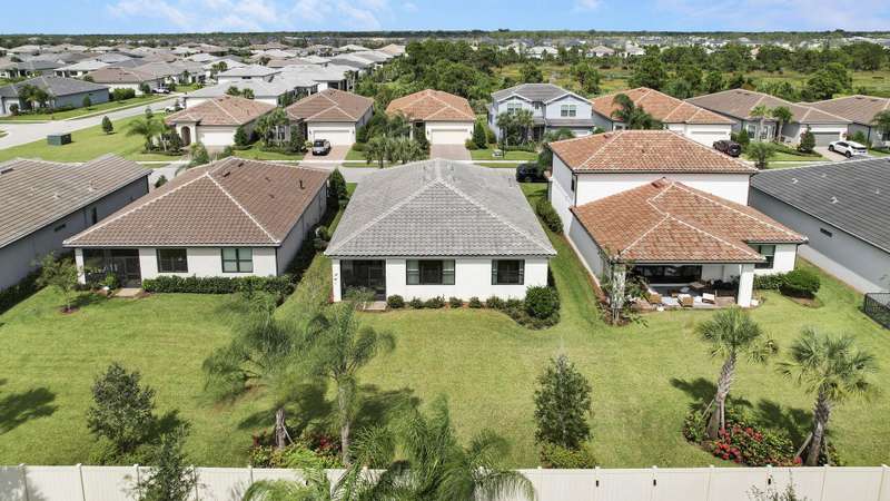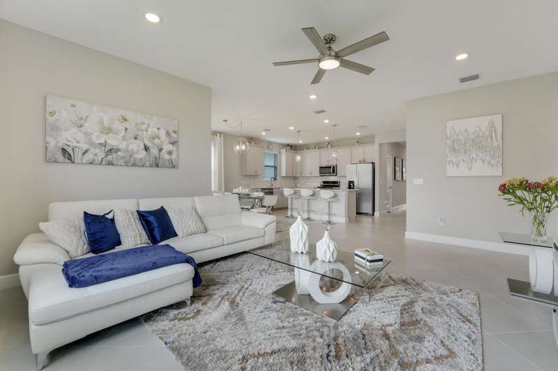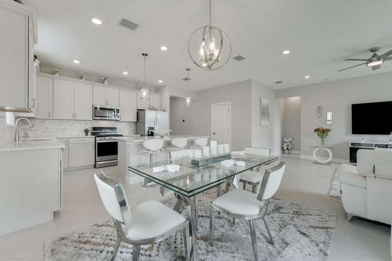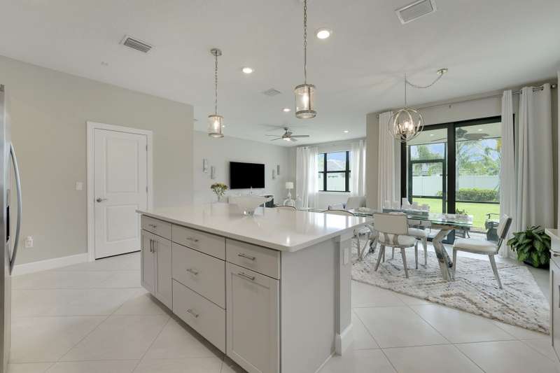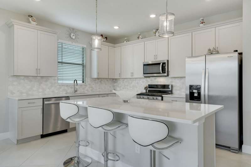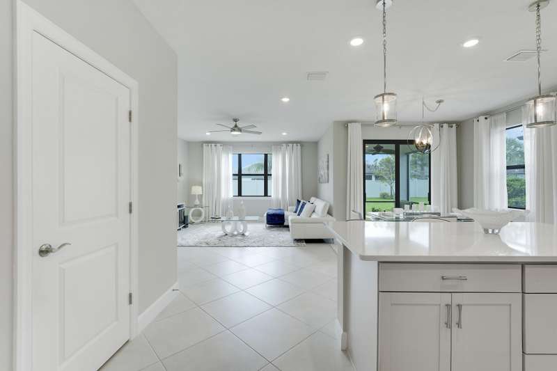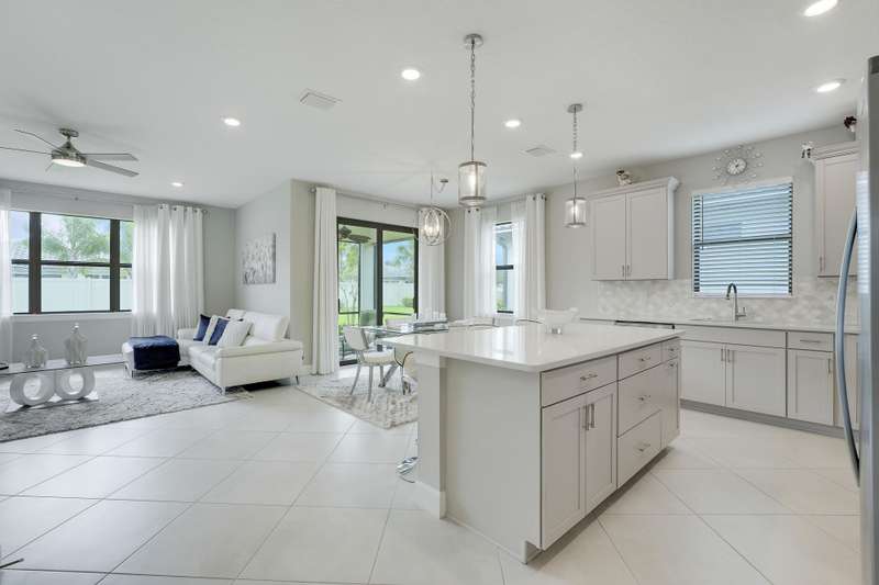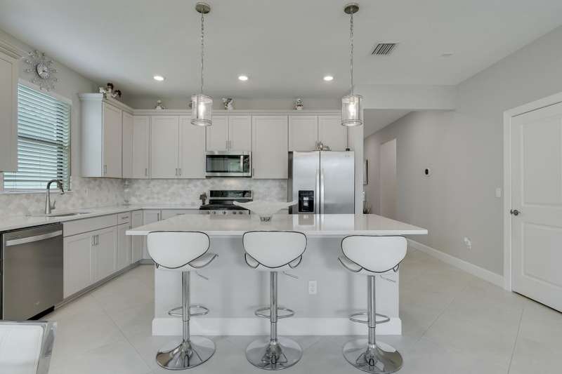 Live Smart. Live Beautifully in Veranda Gardens.This gorgeous one-level, 4-bedroom, 2-bath homeaonly three years oldawelcomes you with soaring high ceilings that fill the space with natural light and an inviting modern feel. Perfectly located in the gated community of Veranda Gardens, it blends contemporary design, comfort, and the easy rhythm of Florida living.Step inside and feel the openness of the 22 porcelain tile flooring that flows effortlessly throughout the home. The kitchen is truly the heart of it allafeaturing soft-close neutral gray cabinetry, a stunning quartz island and countertops, sleek modern backsplash, stainless-steel appliances, a gas range and hood, and a spacious walk-in pantry. Its an ideal space for both everyday cooking and weekend gatherings.