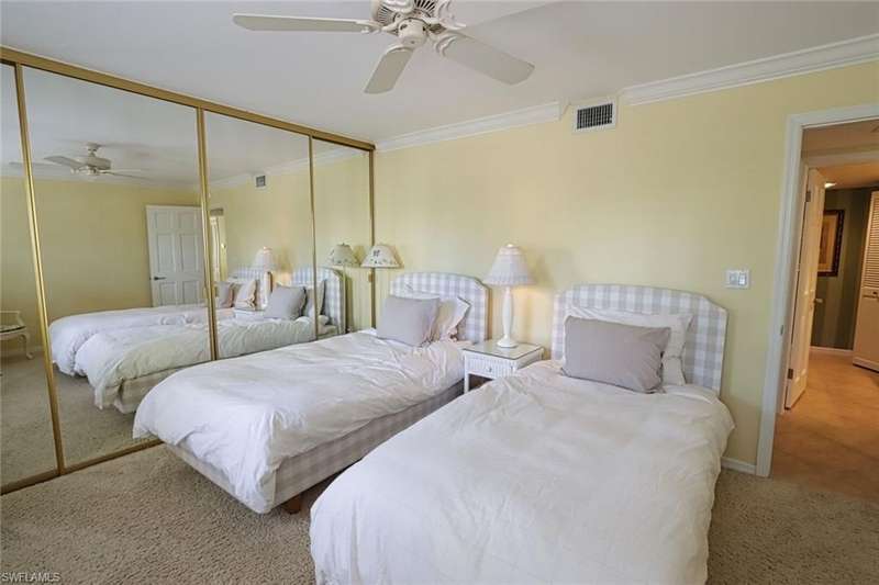 Incredible, direct west/south views of the Gulf await you in this lovely 2 bedroom/2 bath condo within The Moorings. Enjoy the colorful sunsets every evening on the large glass-enclosed and screened lanai and listen to the relaxing sounds of the ocean. With an open kitchen, breakfast bar, quartz countertops, tiled backsplash, and quality appliances, you won’t hesitate to enjoy entertaining family and friends. Be the first to experience The Moorings newest beachfront amenities: brand new pool with extended deck, pergolas, BBQ area, and social area, to be completed this spring. Located directly on the beach, St Croix Club is a 36-unit condominium split into 3 buildings, with only 2 units per floor, so plenty of natural light on 3 sides. Owners have peace of mind with secured entry and under-building parking and storage room. For the active lifestyle, there’s a bike and jog path, and also on-site is a bike storage room and racks for a kayak or paddleboard. Close to renowned shopping and dining at Venetian Village, and a short drive to 5th Ave., or Third Street shops, and restaurants.