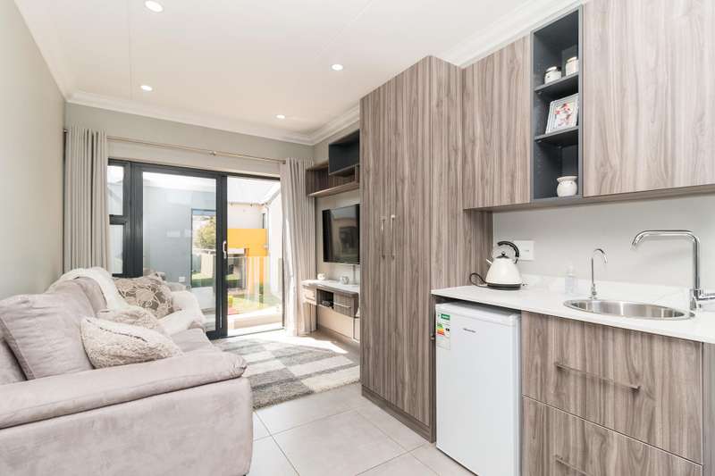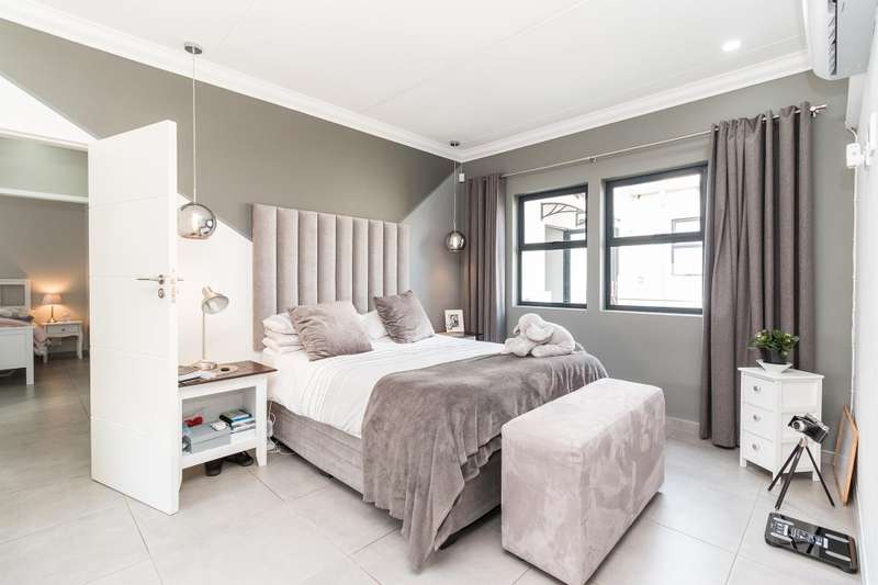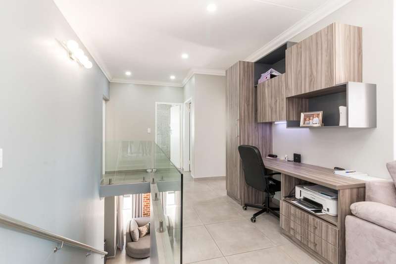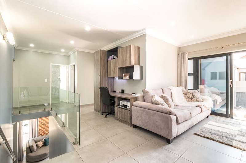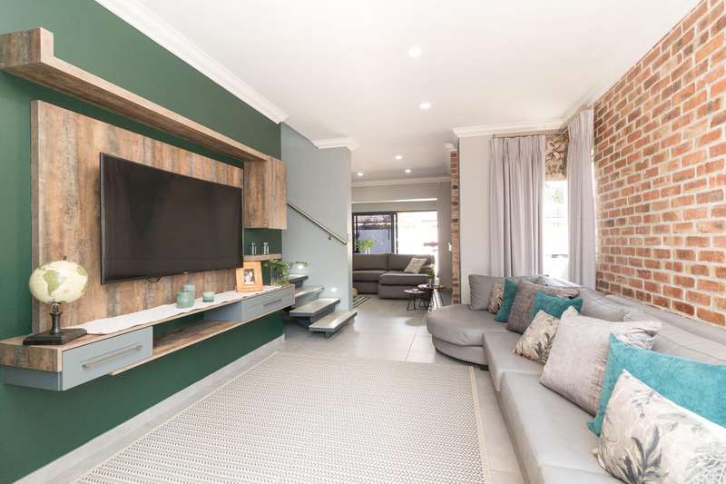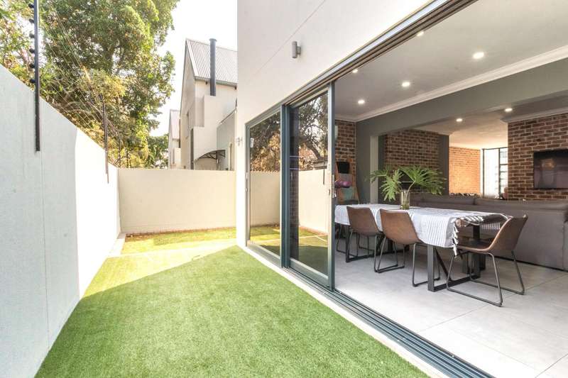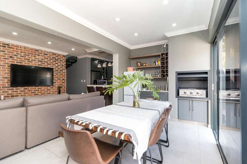 This spacious, lock-up-and-go duplex is a paradigm of contemporary Pretoria East living. Boasting an array of sleek finishes that create a continuous theme throughout this move-in-ready home, its quality is evident from the stylish glass entrance to the exposed brick feature walls. The contemporary and modern interior appeal is guaranteed, with meticulous finishes in all the bathrooms and the kitchen. Downstairs, you will be pleasantly surprised by the sizable living areas and thoughtful details designed for effortless entertaining. Upon entry, you are met by an open-plan living area and a guest bathroom. This space flows seamlessly to an additional lounge/entertainment area and the bright, professional-grade kitchen, which features ample cupboard space, modern countertops, room for a double-door fridge, and a scullery. The expansive second living area, large enough to accommodate both a lounge and dining suite, is the ultimate entertainment hub. It comprises a gas fireplace, an indoor braai, and extra cupboard space with room for a beverage fridge. This exceptional space is lined with sliding stacker doors that open completely to a low-maintenance, semi-wrap-around garden finished with AstroTurf. Upstairs, you?ÇÖll find a cozy pyjama lounge, a convenient kitchenette, and a study nook. There are three spacious bedrooms; the main bedroom is astonishingly large, fitted with an air-conditioner, and accompanied by a beautifully designed and sophisticated full en-suite bathroom. The second bedroom boasts a private balcony, also featuring AstroTurf, creating a perfect spot for a morning coffee or an evening glass of wine. Located in a secure estate with excellent security measures, the home includes a single garage with direct access. Menlo Park is a sought-after suburb offering superb accessibility to main roads and highways. This estate is situated in close proximity to popular schools, hospitals, shopping centres, and the trendy Hazelwood Village. Call now to book your viewing appointment.