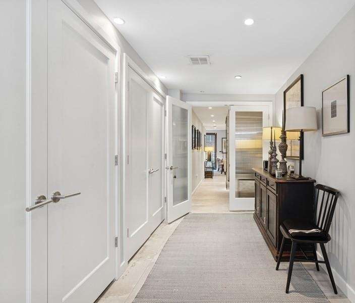 Indulge in the grandeur of this impeccably appointed duplex with tranquil private patio retreat located in the heart of vibrant downtown Jersey City and one block from historic Van Vorst Park. Currently configured as a two-bed this spacious home can easily be converted back to its originally conceived three-bedroom layout. Built from ground up in 2018 this distinctive residence has since undergone an exquisite transformation with meticulous attention to detail beginning with a sumptuous chef ??s kitchen featuring sleek Silestone counter tops and back splash, vented Wolf dual range and microwave, Sub-Zero wine refrigerator, Bosch dishwasher, farmhouse sink and Restoration Hardware lighting that flows seamlessly into a sun-drenched dining area with custom built-ins and banquette, stunning wall covering, pendant lighting and library sconces. Make your way to the rear of this striking home and experience a generous primary bedroom sanctuary with distinct lounging area, floor-to-ceiling windows and abundant natural light. A luxurious spa bath boasts dual marble vanity with an adjoining storage closet with pull-out shelving, marble clad deep soaking tub, frameless glass rain shower, Ralph Lauren vanity lamps and beautiful mosaic tile flooring. Escape to an expansive living area with ideally conceived home office niche that opens to your lovely outdoor oasis, perfect for entertaining family and friends or just relaxing in your peaceful urban hideaway. A large guest bedroom offers the utmost in privacy and comfort while a second reinvented bath with marble vanity and Visual Comfort lamps, custom built-ins with pull-out shelving and hampers, handsome wall coverings and frameless glass shower is certain to please. With beautiful hardwood and cement tile flooring, Shade Store window treatments, recessed lighting, Nest thermostats, central air and heat, full-sized washer/dryer, abundant storage with custom California Closets throughout, a 15 ??x 6 ?? storage room and refined luxury that will appeal to even the most discerning of buyers, this delightful abode can be yours to call home.