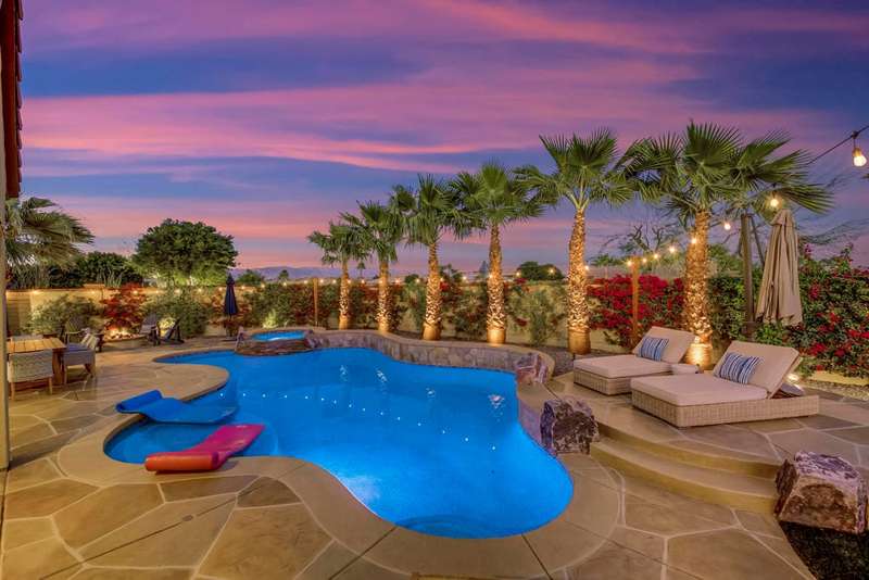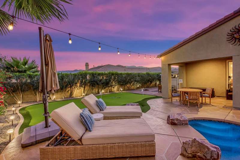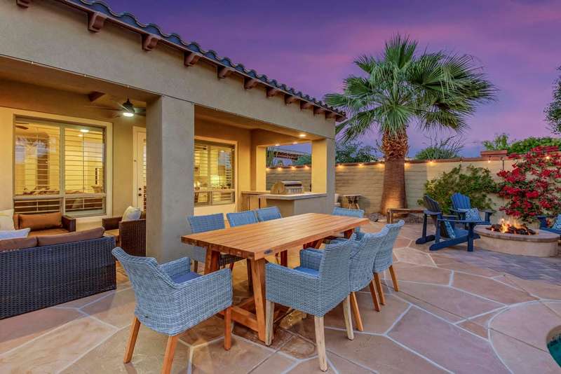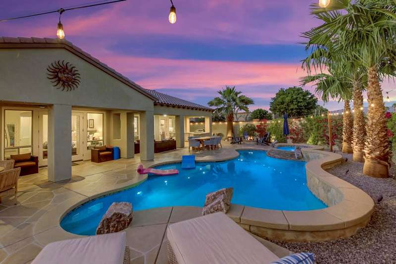 Welcome to Montage at Santa Rosa Coachella Festival Fans Favorite Resort Style place to be! Historical and forward performing luxury short term rental (STR) investment opportunity in this fabulous fully furnished remodeled Tuscan Style home featuring 5 spacious bedrooms, 3 baths. Multiple indoor & outdoor entertainment features = Relaxation & Fun! Open spacious gourmet kitchen boasts top of the line SS Appliances- built in cabinets, Calcutta marble waterfall countertop island w/ casual sit down & bar top seating, separate mini bar, fireplace Lg screen TV perfect for cooking while entertaining with friends & family! Step outside to your full-on private resort, flowing Palm Trees, Lg freeform saltwater pebble tec Pool & Spa, misting system, spacious patio deck, multiple lounge areas for tanning & dining options, cocktails at the spacious BBQ island or cozy firepit. Putting green, cornhole, bocce ball or move the party indoors to the tricked out Amazing Arcade Game Room w/ multiple full size Arcade games, Air Hockey, Pool Table, Foosball & more!Multiple options indoor and out, accommodating your entire group of friends & family with ample parking, walking distance to Coachella / Stagecoach, Polo & plenty of Golf, Dining and Shopping! Welcome to your private STR Resort!