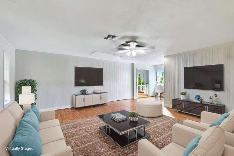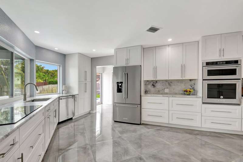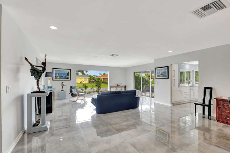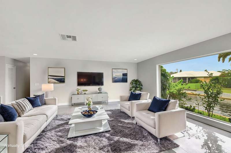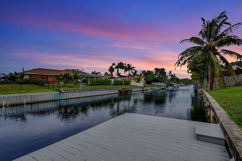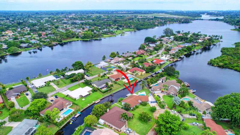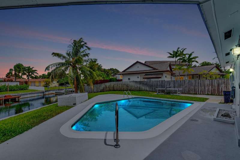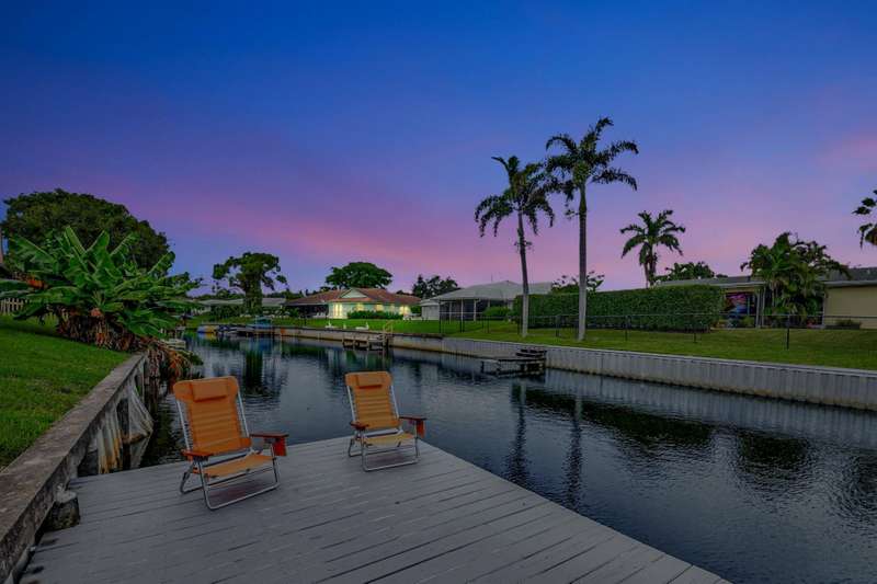 BRAND NEW ROOF! Just completed with warranty that will be put in the new buyers names. Move-in with peace of mind, Easier loan approval ,Better insurance rates. Brand NEW pool pump 2025. Septic tank replaced 2023, Drain field replaced 2018. Dock replaced and stained 2024. New Hurricane panels 2019. 5 ton AC system 2019 professionally maintained. Stunning 30x30 porcelain tiles installed in 2020. Ceiling fans in each room, SS KitchenAid Pro appliances in kitchen, KitchenAid Fridge 2025, Convection oven with touch glass top stove 5 burners and quartzite countertops Homes sits on a double lot and has room for a boat/RV. Beautiful coconut tree and blooming banana tree. This home is an epitome of a true south Florida gem! Enjoy your own private pool with tranquil views of the lake, creating the perfect backdrop for relaxation and outdoor entertaining. The garage has been thoughtfully converted into a spacious family room, but with endless possibilitiesit can easily be transformed back into a garage, reimagined as a second master suite with en suite bath, or converted into a private in-law quarter to suit your lifestyle needs. Dont miss the chance to make this versatile, waterfront retreat your owncome see the potential and fall in love!