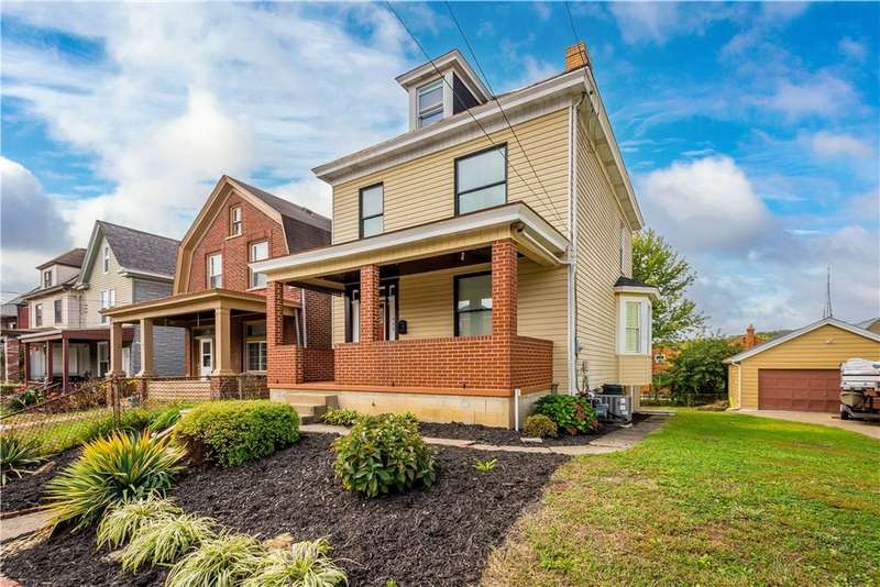 Beechview charm meets modern comfort! Situated on a double lot, this 3-story home offers a short commute to Downtown with easy access to public transit and the parkway. A covered front porch welcomes you into a bright entryway with a stately staircase and chandelier that adds a touch of elegance. The open living/dining area features laminate floors, a modern fireplace, and a large bay window. Enjoy the updated eat-in kitchen with stainless steel appliances and access to a private back porch. Upstairs offers two bedrooms, a bonus walk-in closet room, and a spa-like bath with jetted tub and separate shower. The finished third-floor primary retreat boasts updated floors and great closet space?perfect as a bedroom or home office! Walk-out basement with storage and laundry, plus off-street parking for 2+ cars and a detached outbuilding ideal for a workshop or art studio! Timeless character, modern updates, and unbeatable convenience -- the perfect combination for today's city lifestyle!
