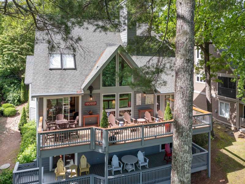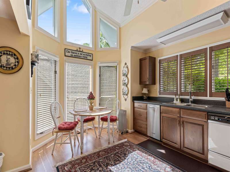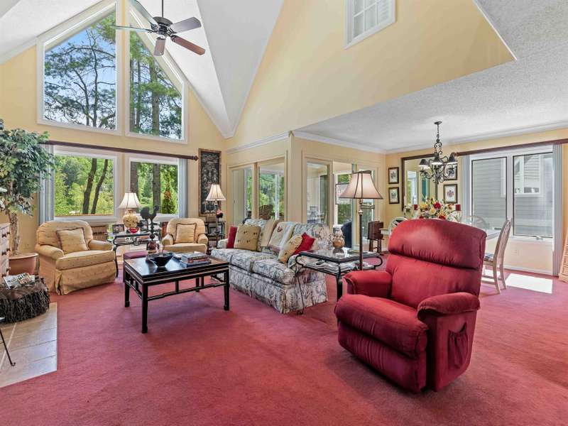 Highly sought-after stand-alone condo in Kenmure Country Club, ideally located near the gate and amenities. The main level features an open floor plan, cathedral ceiling, gas fireplace, dining area, and a well-equipped kitchen. Enjoy the spacious primary suite on the main level and access the large deck overlooking the 10th fairway through a lovely sunroom. Upstairs offers two versatile flex spaces and a full bath. The finished basement includes a large bedroom with full bath, covered lower deck access, a second flex room, oversized laundry with storage, walk-in closets, and an additional full bath.