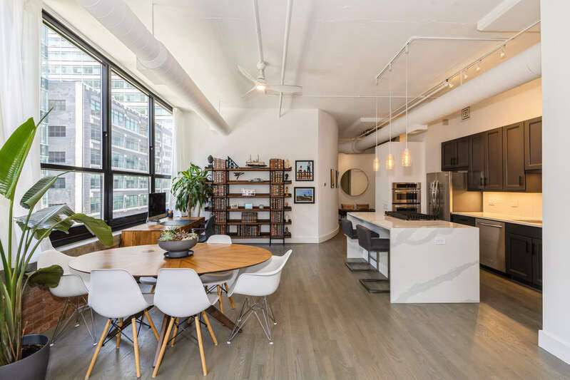 Prepare to be impressed by this stunning, 1500 sq. ft. loft that seamlessly blends historic character with modern luxury. Step inside and immediately notice the soaring 12-foot ceilings and newer wide-planked hardwood floors that flow throughout the entire space. Unlike many lofts, this one offers fully enclosed bedrooms, providing privacy. The heart of the home is a massive open-concept living and dining area, an entertainer's dream! It connects perfectly to the updated island kitchen where you'll find sleek quartz countertops, stainless steel appliances, and beautiful cabinetry. The primary suite features a generous walk-in closet and a spa-like ensuite bath. Unwind in the custom stainless steel soaking tub surrounded by elegant porcelain tile, complemented by convenient dual vanities. Practicality meets luxury with in-unit laundry, a dedicated heated garage parking space (#A78), and additional storage included. This is a full-amenity building, with 24-hour door staff, fitness center, and on-site building manager. You simply cannot beat this prime downtown/West Loop location! Perfect for any commute: you're directly across from Union Station, just one block to Ogilvie Transportation Center, and two blocks to the Blue Line. Step outside and you're only a short stroll away from the trendy Fulton Market and the world-class dining of Restaurant Row. This is the one you've been waiting for! Non-refundable move-in fee in lieu of a security deposit.