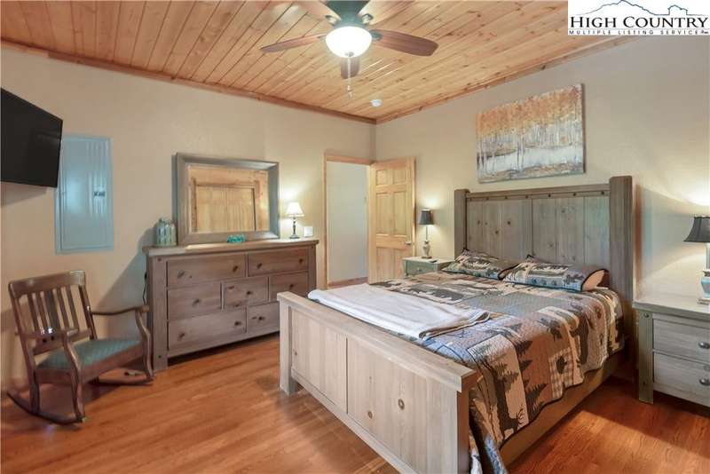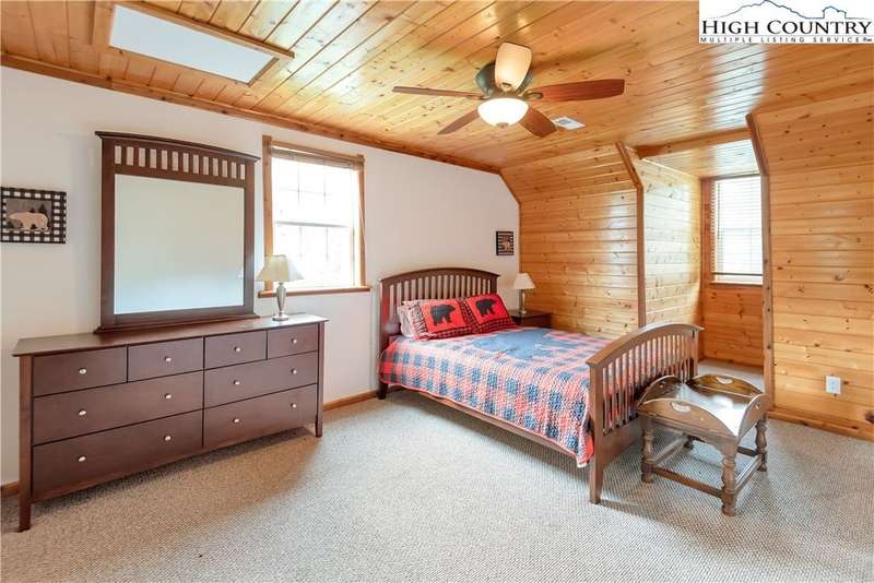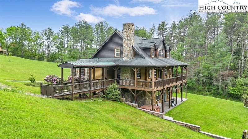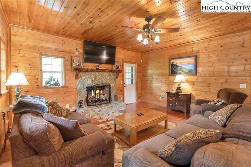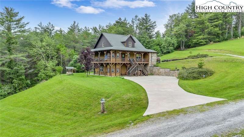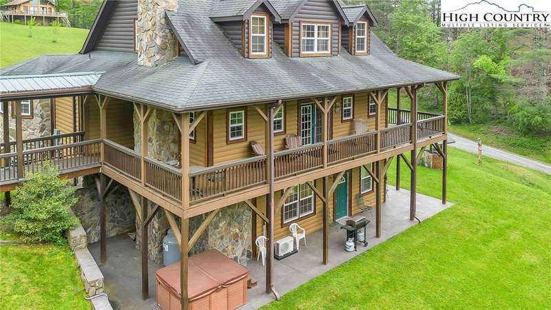 Mountains & River Cabin Vibes?Hot Tub, Game Room, and Adventure Next Door. This turnkey log cabin in River Mountain Estates sits right where the North and South Forks of the New River meet. The river's wide, scenic, and ready for action with a canoe, kayak, and tubing outfitter right next door. Whether you're looking for a mountain getaway, a high-performing vacation rental, or a forever cabin in the woods?this place delivers. Parking? No problem. Pull in at the top for easy main-level entry or park below for direct access to the finished basement. Inside, the main level features a spacious kitchen with stainless steel appliances, granite countertops, tons of cabinetry, and a sunny breakfast nook. A larger dining area off the kitchen is perfect for big family dinners or game nights. The great room boasts a cozy gas fireplace and opens to a massive wraparound porch?ideal for soaking in mountain air and river sounds. The main level primary suite includes a private bath with whirlpool tub and walk-in shower. A half bath and laundry room for guests complete this floor. Head upstairs to a spacious loft?perfect for a card table, TV lounge, or extra sleeping area?and two roomy bedrooms that share a full bathroom. The finished lower level? It's where the fun kicks up a notch. One huge space is set up as an extra sleeping zone with a private bath featuring a massive walk-in shower. There's also a game room with walk-out access to a flat yard?perfect for kids, pets, and yes, your own private hot tub. The community offers a shared New River access point just a minute's drive away?great for fishing, paddling, or simply relaxing riverside. Only 25 minutes to West Jefferson or Sparta. Fully furnished, offered turnkey, and with rental history?this one's ready to rock. Showings are easy, but it won't last long. Don't miss your chance to own a river adventure basecamp with style!